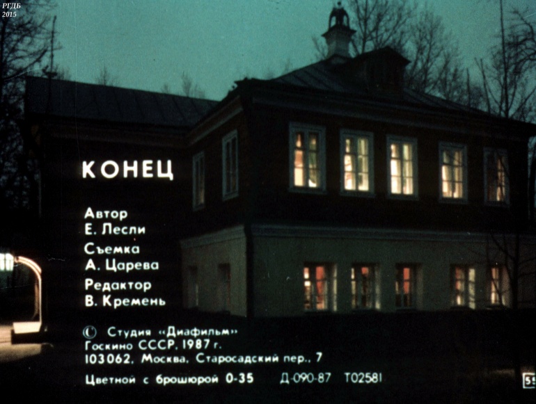 Дом-музей А. Н. Островского в Москве 0 Категория: ДиафильмыПросмотры: 1 040 Диафильм "Дом-музей А. Н. Островского в Москве".Студия "Диафильм" Госкино СССР, 1987 год. Д-090-87, цветной 0-30 копеек
