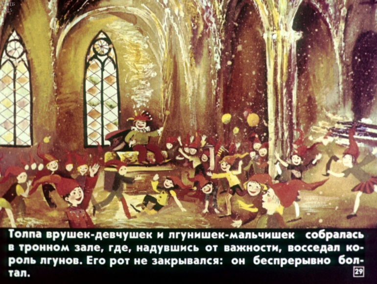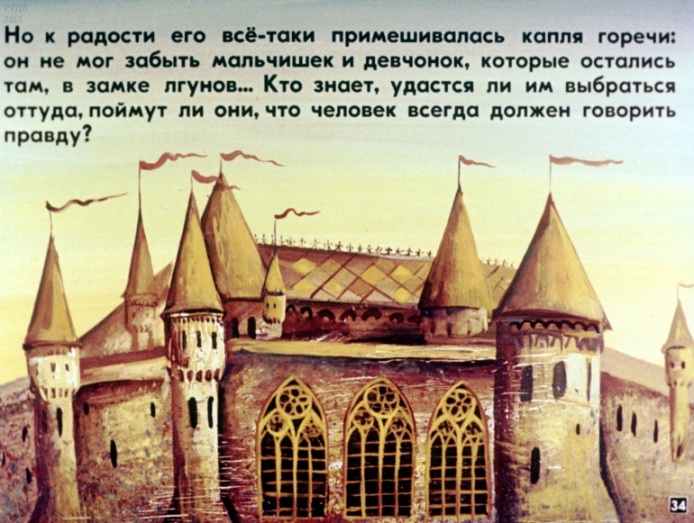 Замок лгунов 0 Категория: ДиафильмыПросмотры: 1 599 Витауте Жилинскайте. Диафильм "Замок лгунов".Студия "Диафильм" Госкино СССР, 1985 год. Д-300-85, Д-301-85, цветной 0-30 копеек