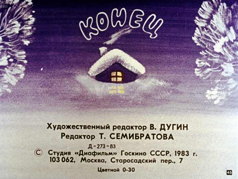 Зимовье зверей 1 Категория: ДиафильмыПросмотры: 1 465 Диафильм "Зимовье зверей". Русская народная сказкаСтудия "Диафильм" Госкино СССР, 1983 год. Д-273-83, цветной 0-30 копеек