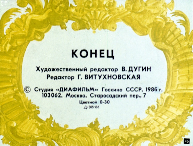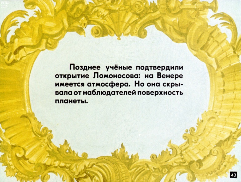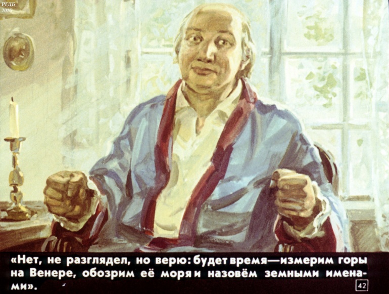 И назовем моря на Венере 0 Категория: ДиафильмыПросмотры: 966 Вл. Муравьев. Диафильм "И назовем моря на Венере". Великому рускому ученому Михаилу Васильевичу Ломоносову посвящаетсяСтудия "Диафильм" Госкино СССР, 1986 год. Д-305-86, цветной 0-30 копеек