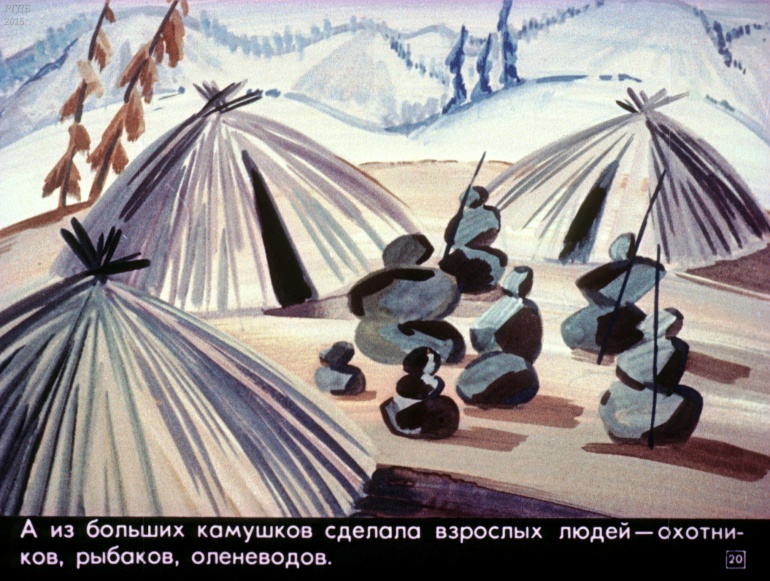 Игрушечный народ 1 Категория: ДиафильмыПросмотры: 987 Диафильм "Игрушечный народ". Чукотская сказкаСтудия "Диафильм" Госкино СССР, 1983 год. Д-341-83, цветной 0-30 копеек