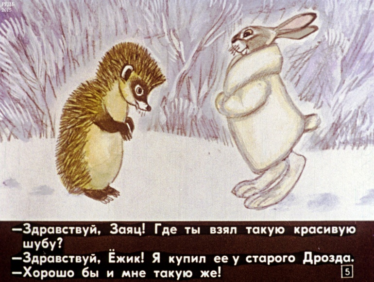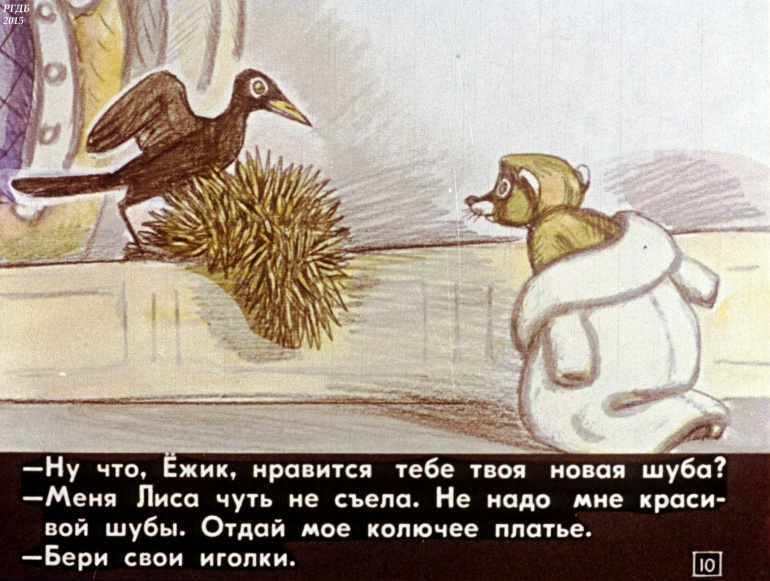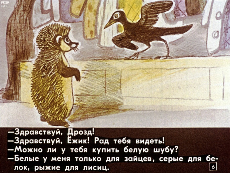 Как ёжик шубу менял 1 Категория: ДиафильмыПросмотры: 1 100 Диафильм "Как ежик шубу менял".Студия "Диафильм" Госкино СССР, 1986 год. Д-155-86, цветной 0-30 копеек