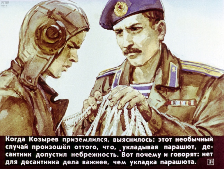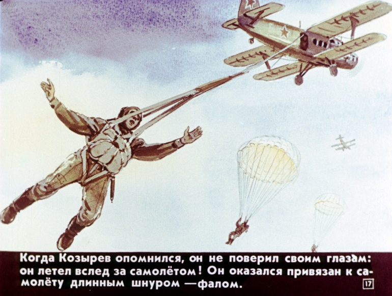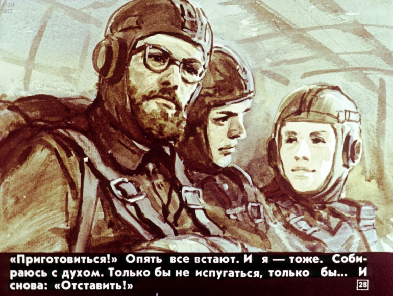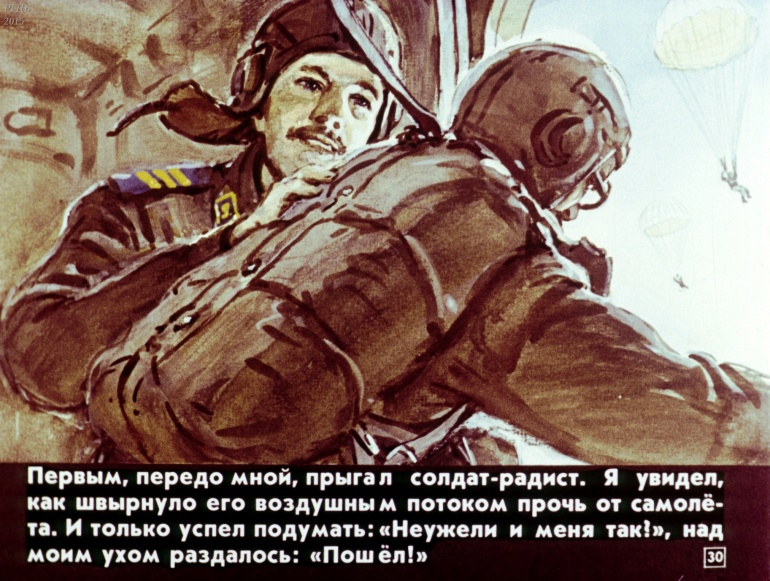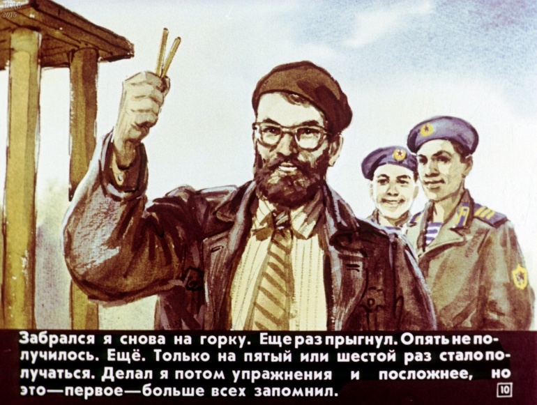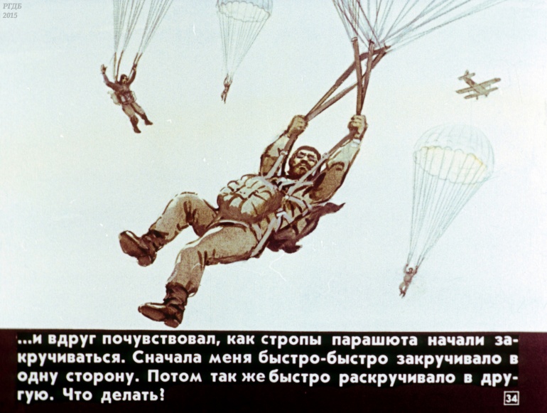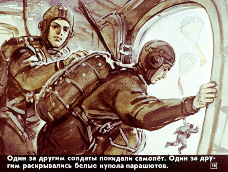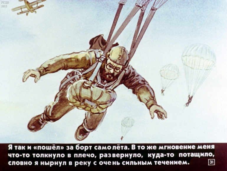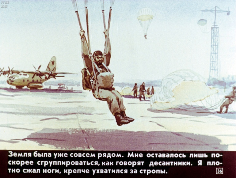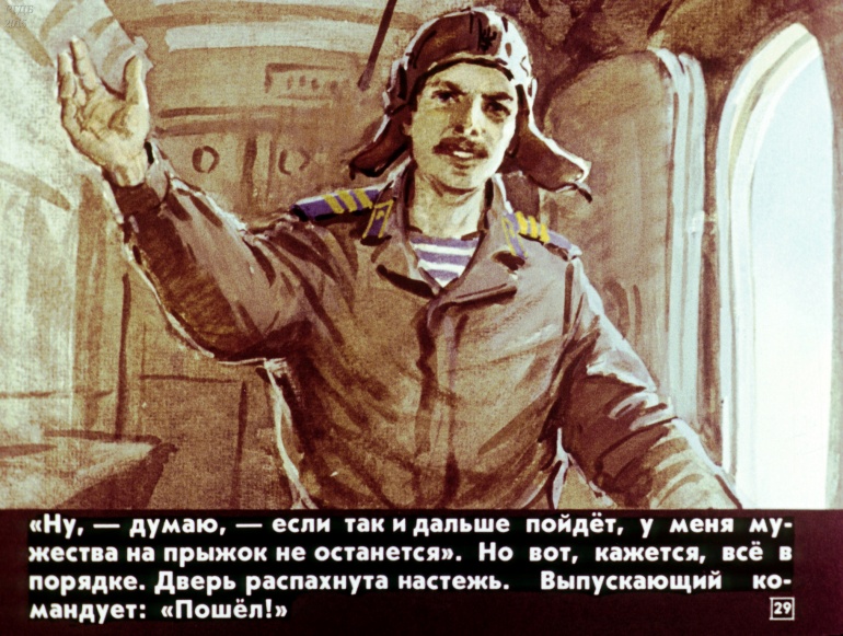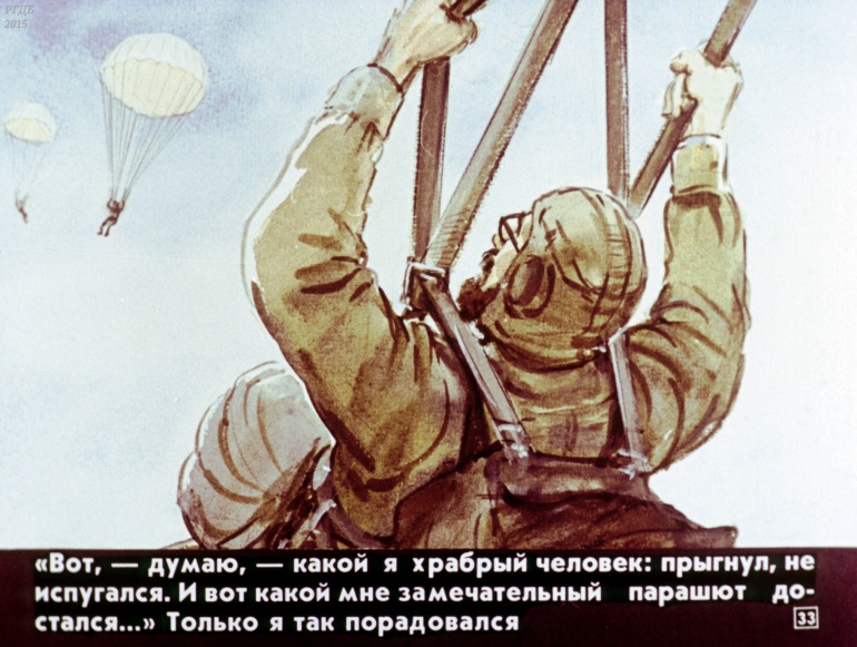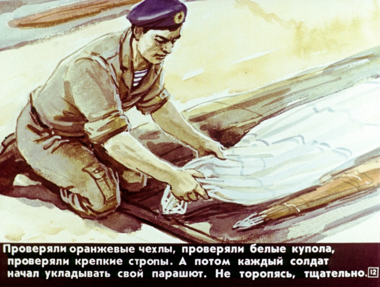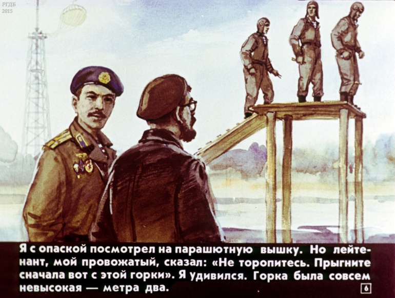 Как я прыгал с парашютом 0 Категория: ДиафильмыПросмотры: 1 146 Борис Никольский. Диафильм "Как я прыгал с парашютом". Из серии "Как солдат стал солдатом"Студия "Диафильм" Госкино СССР, 1985 год. Д-252-85, цветной 0-30 копеек