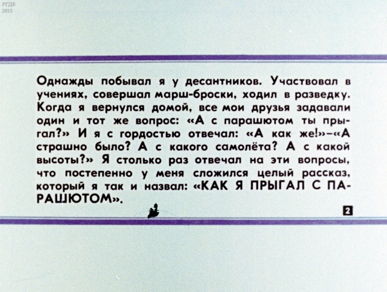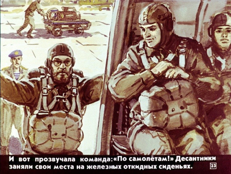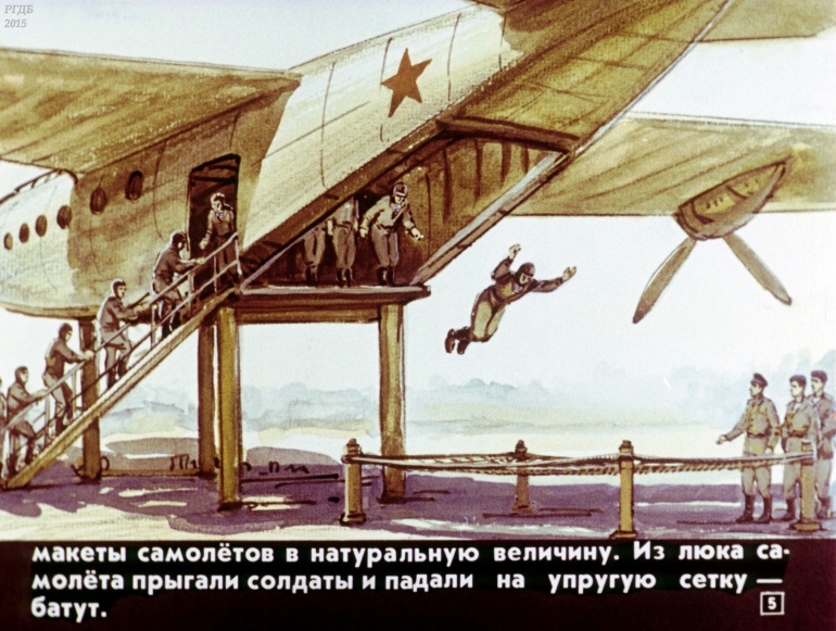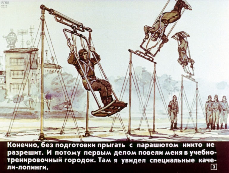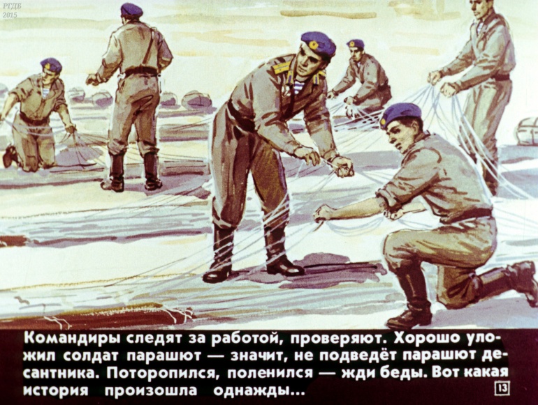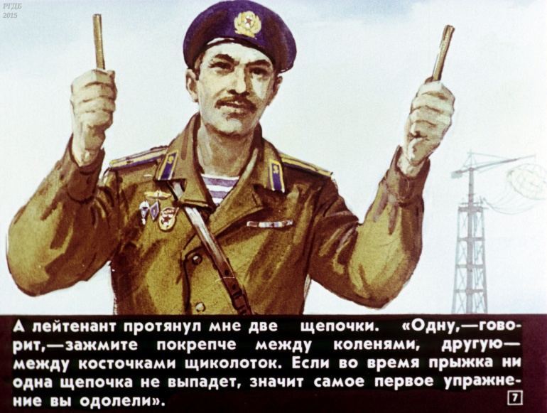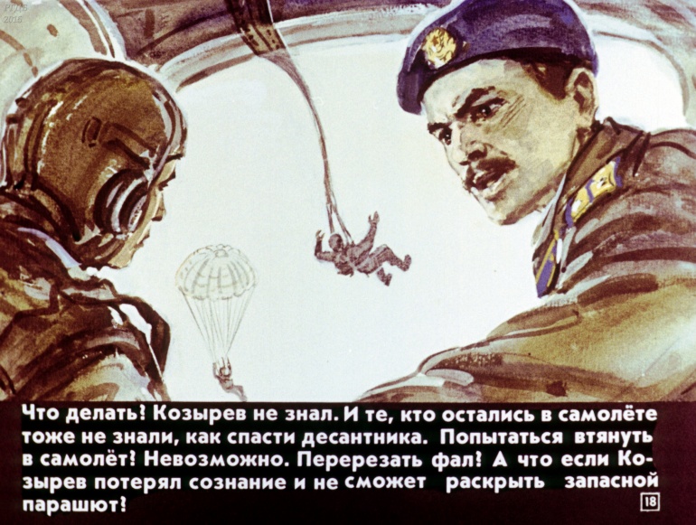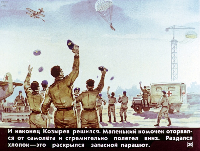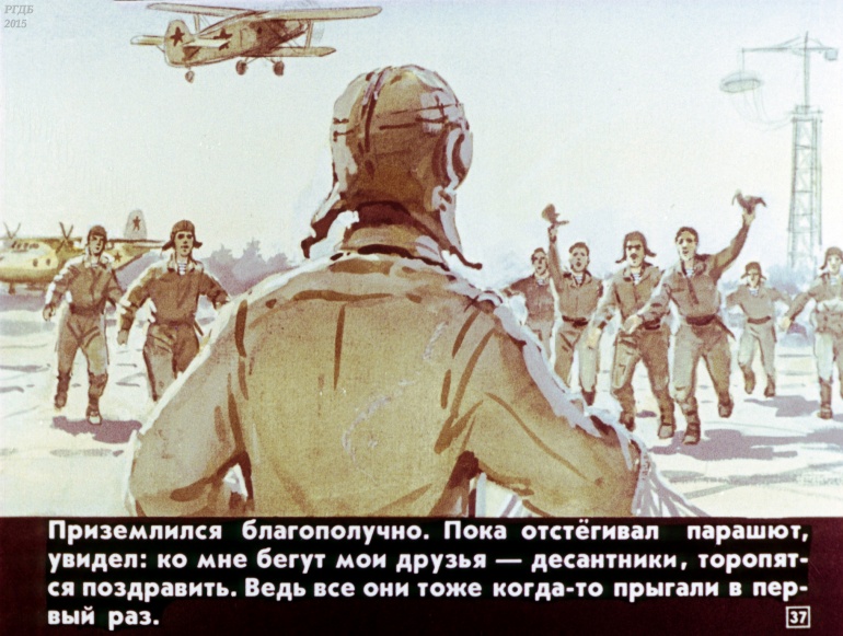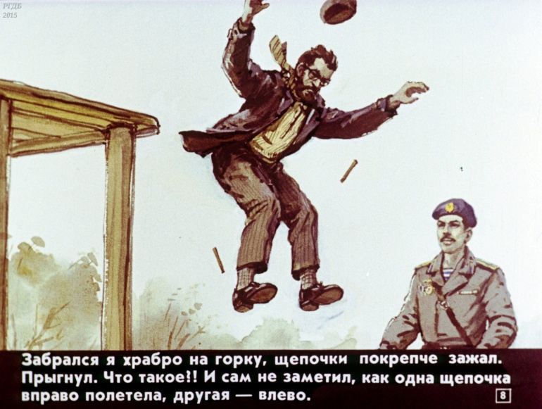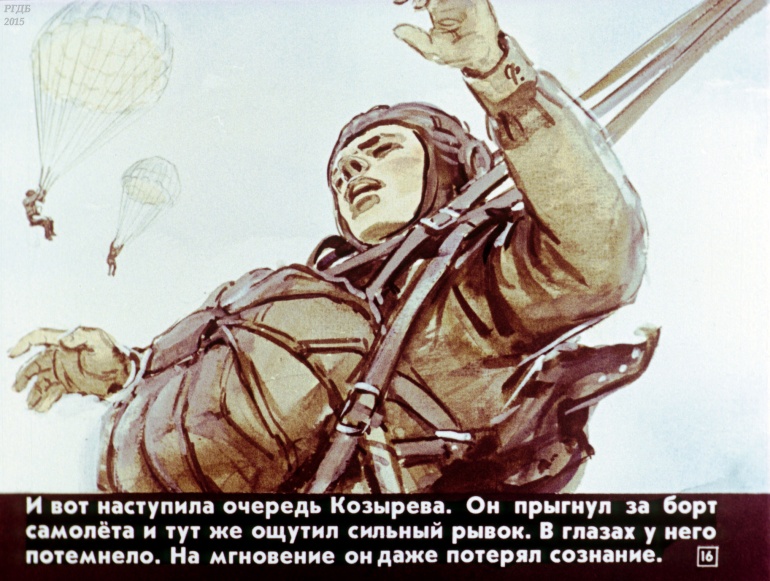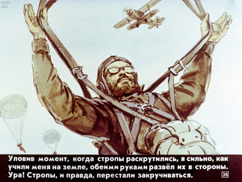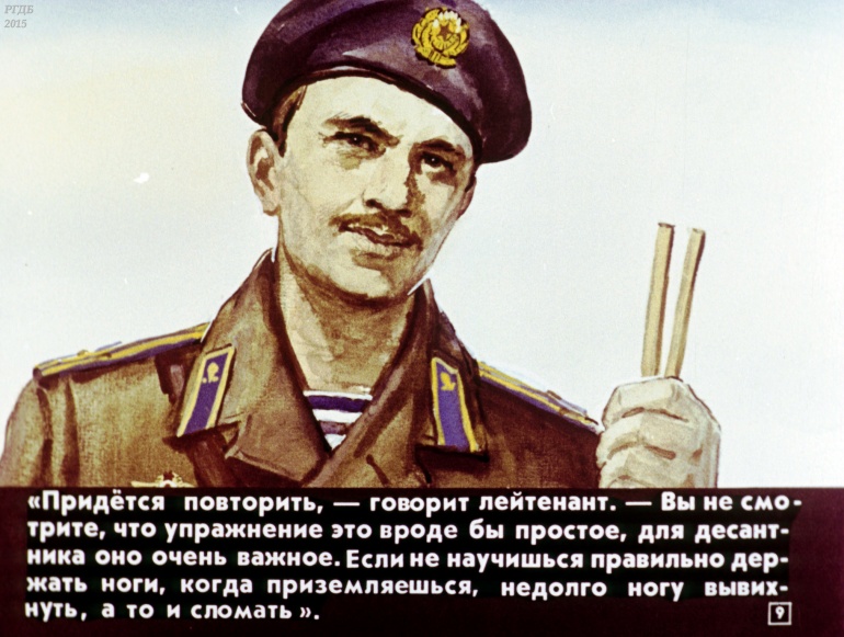 Как я прыгал с парашютом 0 Категория: ДиафильмыПросмотры: 1 146 Борис Никольский. Диафильм "Как я прыгал с парашютом". Из серии "Как солдат стал солдатом"Студия "Диафильм" Госкино СССР, 1985 год. Д-252-85, цветной 0-30 копеек