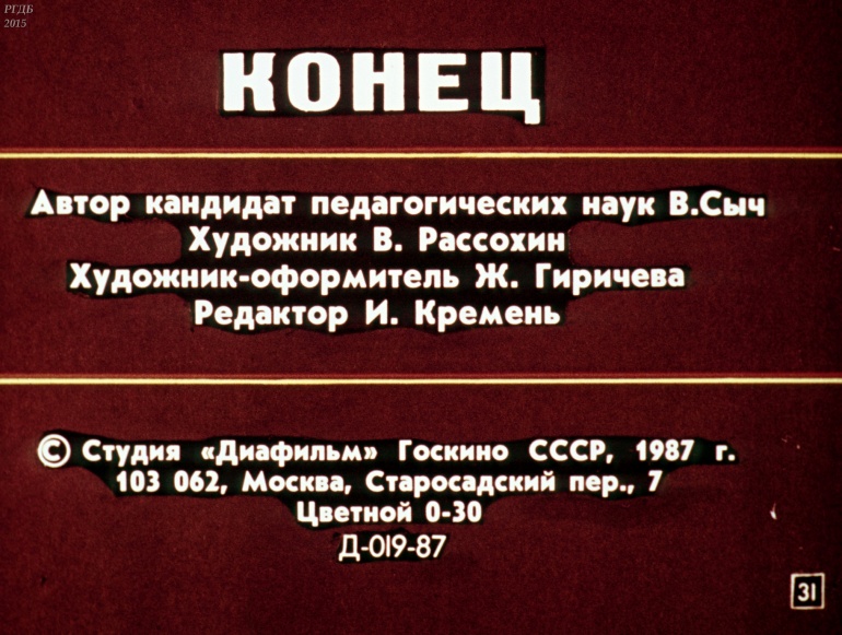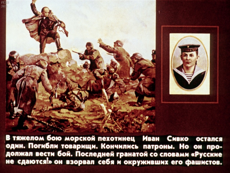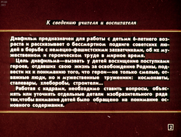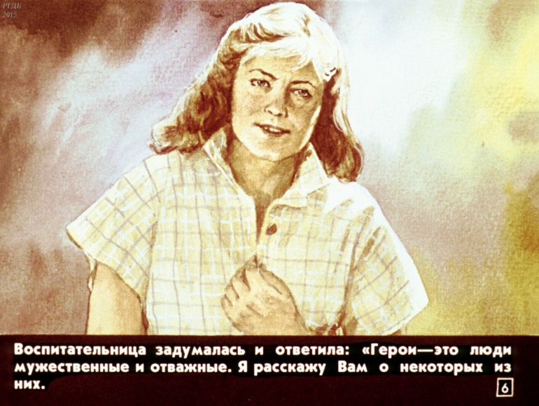 Кого называют героями 3 Категория: ДиафильмыПросмотры: 822 Диафильм "Кого называют героями".Студия "Диафильм" Госкино СССР, 1987 год. Д-019-87, цветной 0-30 копеек