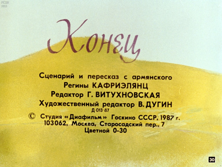 Кувшин с золотом 1 Категория: ДиафильмыПросмотры: 854 Ованес Туманян. Диафильм "Кувшин с золотом".Студия "Диафильм" Госкино СССР, 1987 год. Д-013-87, цветной 0-30 копеек