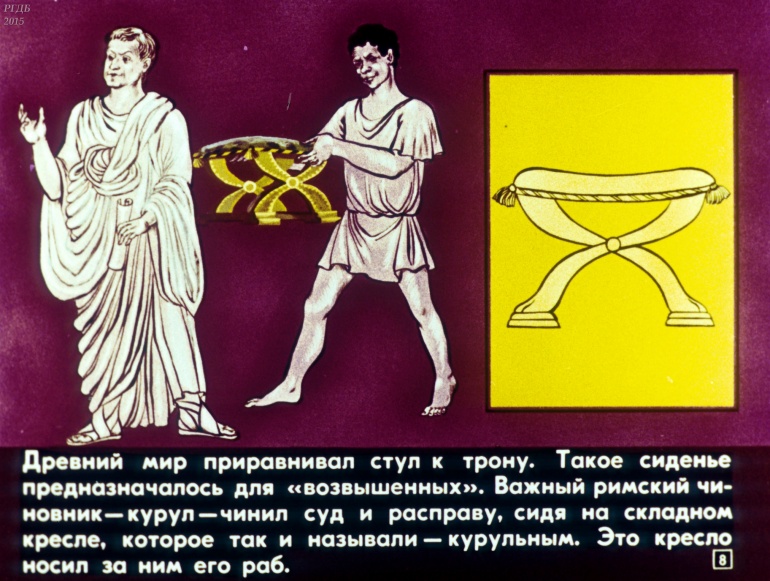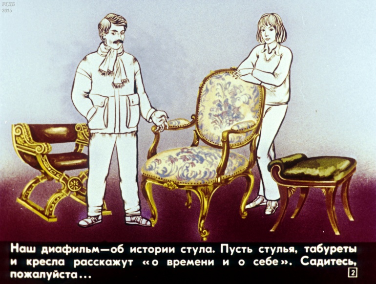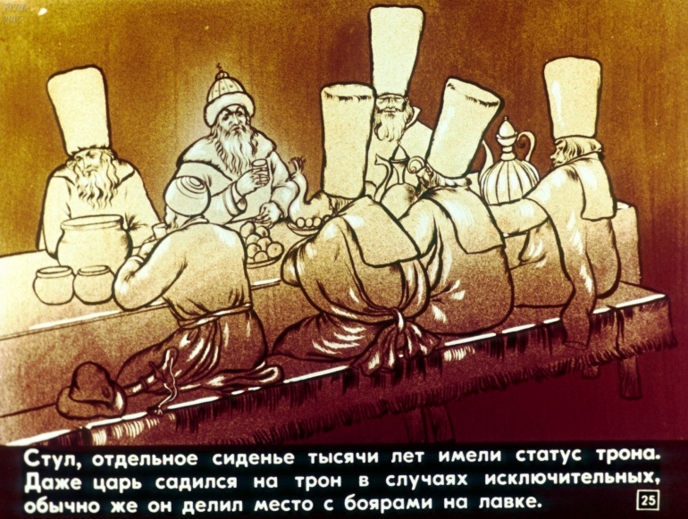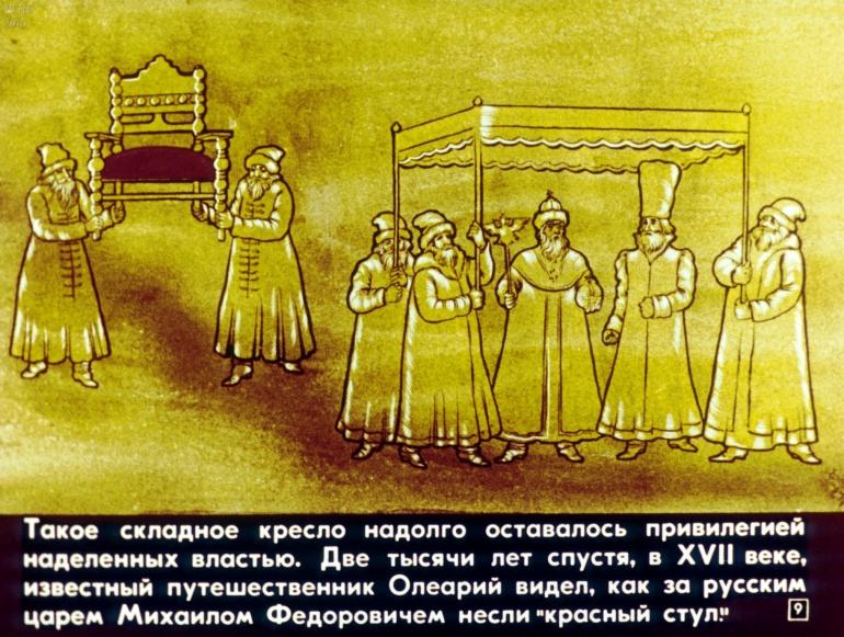 Лавка, кресло, царский трон 0 Категория: ДиафильмыПросмотры: 777 Диафильм "Лавка, кресло, царский трон".Студия "Диафильм" Госкино СССР, 1986 год. Д-280-86, цветной 0-30 копеек