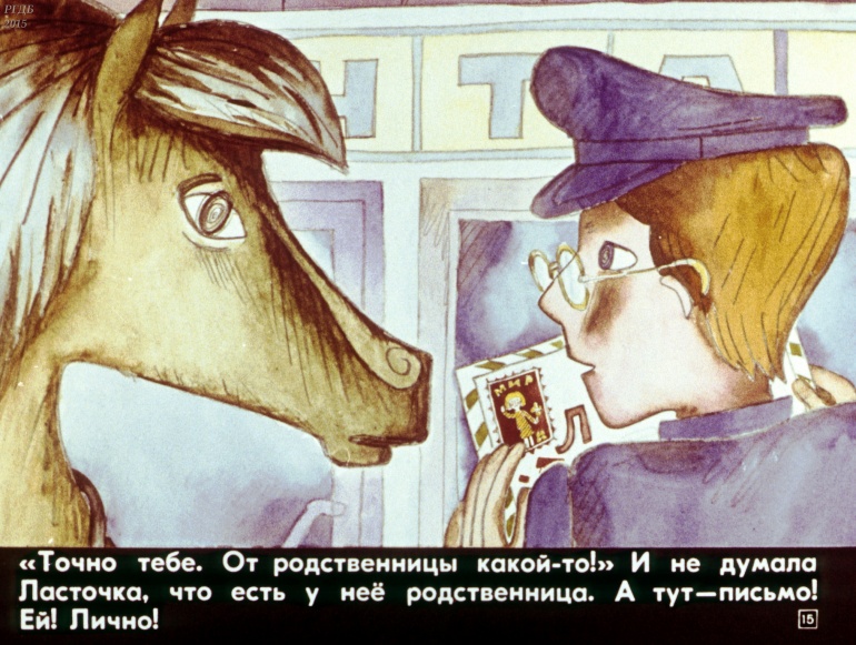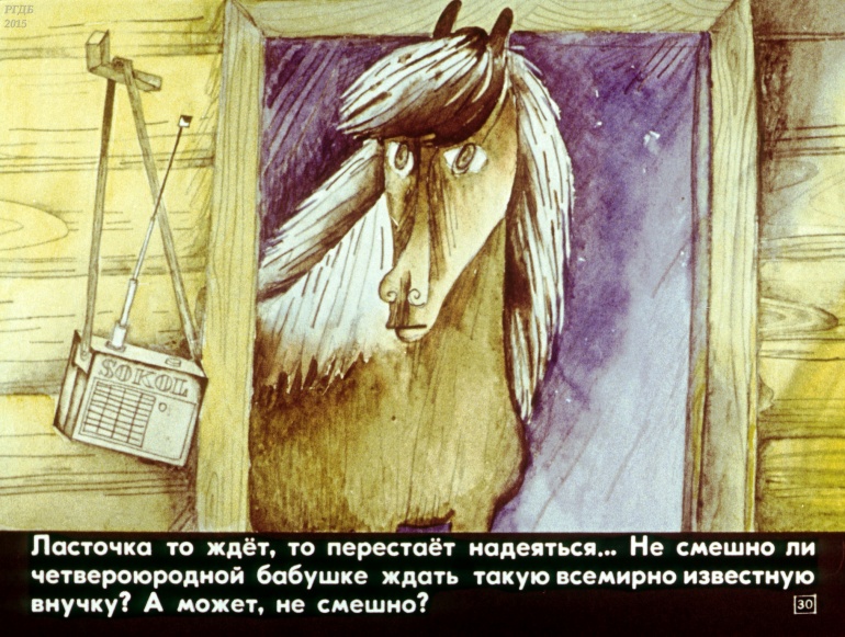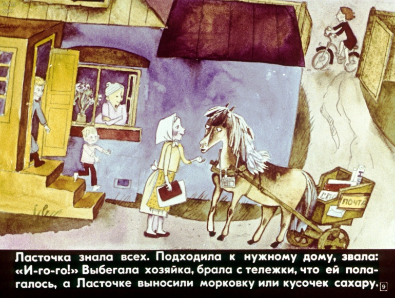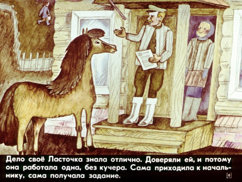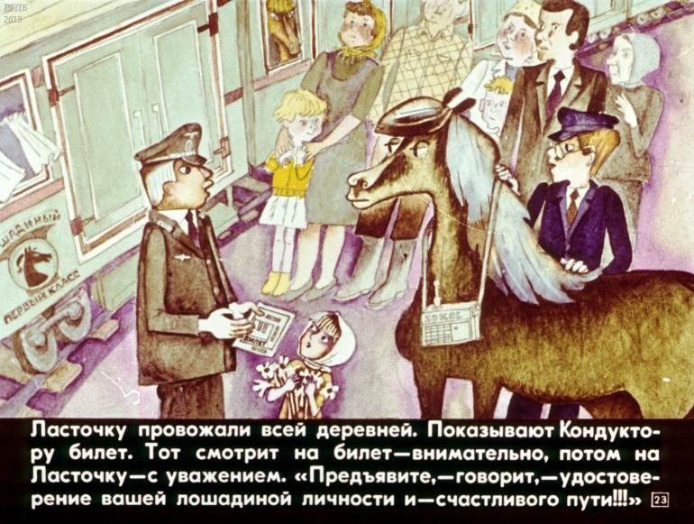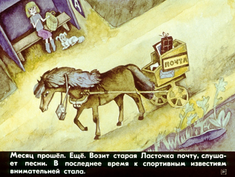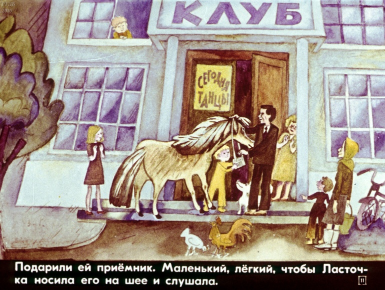 Лошадь Ласточка 0 Категория: ДиафильмыПросмотры: 928 Наталья Абрамцева. Диафильм "Лошадь Ласточка".Студия "Диафильм" Госкино СССР, 1983 год. Д-306-83, цветной 0-30 копеек