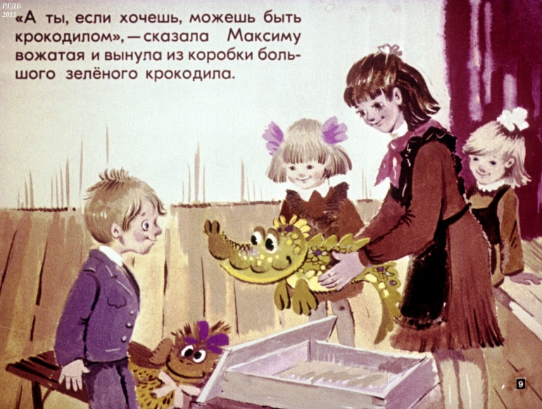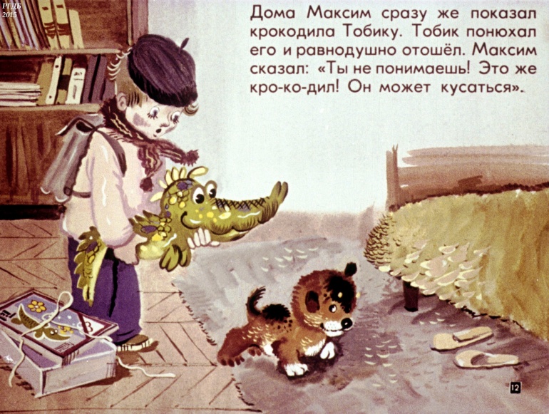 Максим, щенок и крокодил 0 Категория: ДиафильмыПросмотры: 1 139 Светлана Летова. Диафильм "Максим, щенок и крокодил".Студия "Диафильм" Госкино СССР, 1984 год. Д-055-84, цветной 0-30 копеек