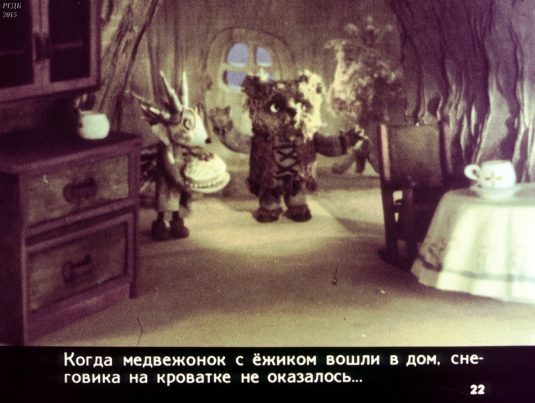 Медвежонок и снеговик 0 Категория: ДиафильмыПросмотры: 784 Н. Притулина. Диафильм "Медвежонок и снеговик". Студия "Диафильм" Госкино СССР, 1987 год. Д-197-87, цветной 0-30 копеек