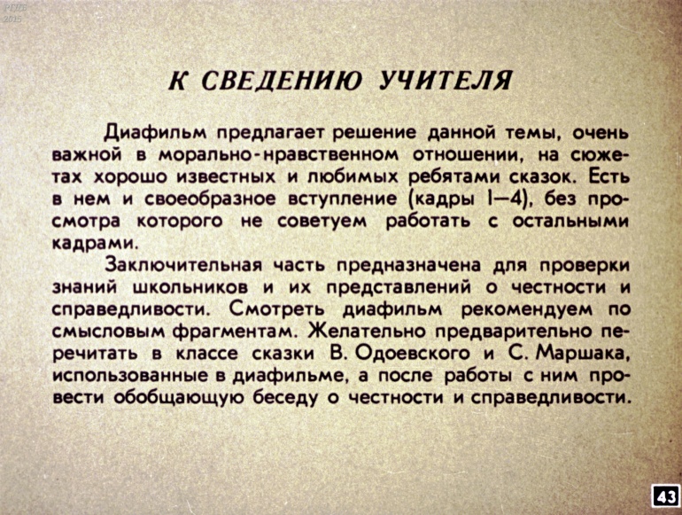 О честности и справедливости 0 Категория: ДиафильмыПросмотры: 860 Диафильм "О честности и справедливости".Студия "Диафильм" Госкино СССР, 1971 год. Д-252-87, цветной 0-30 копеек