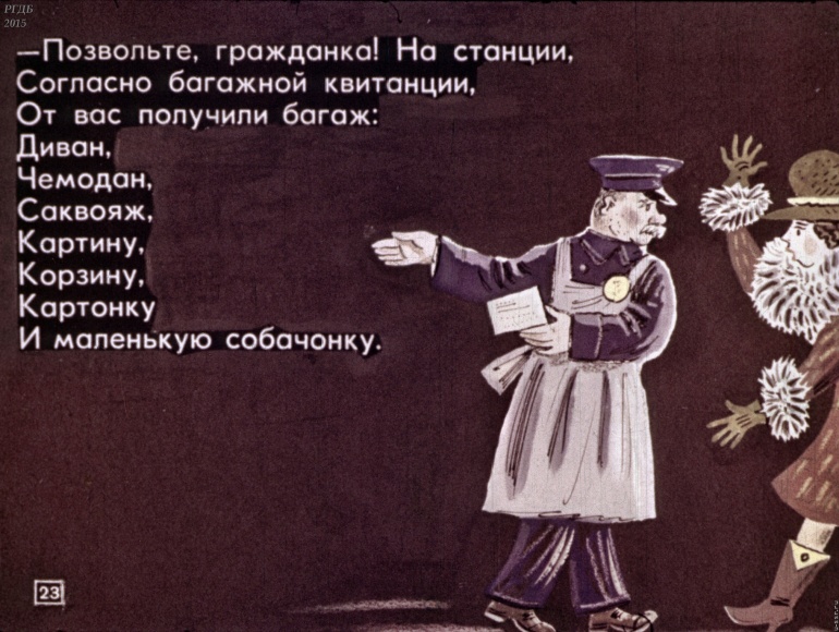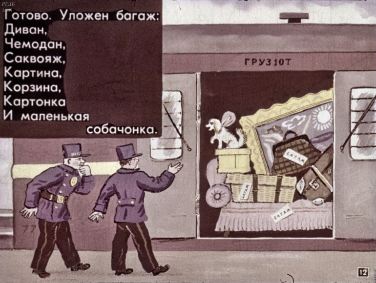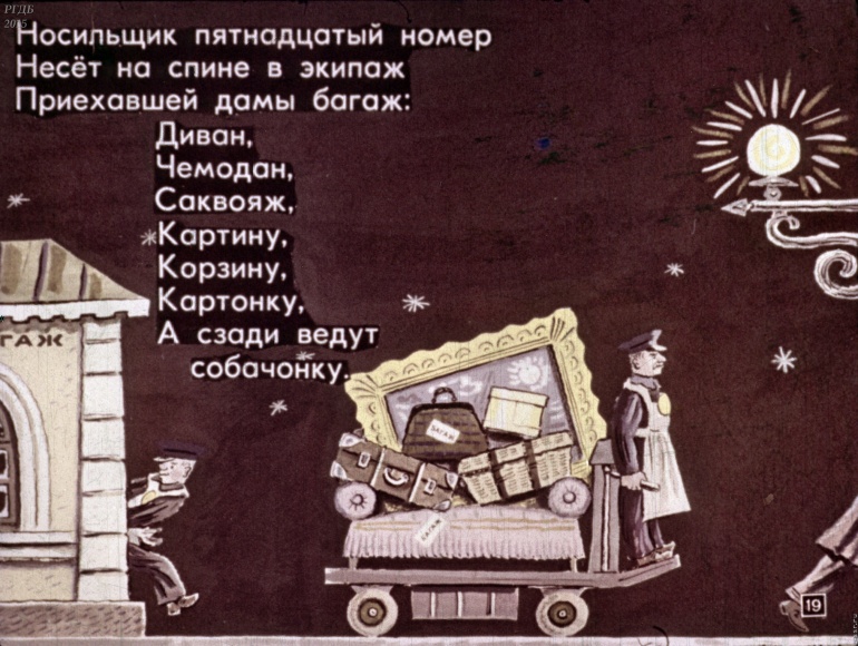 Багаж 0 Категория: ДиафильмыПросмотры: 1 921 Самуил Маршак, "Багаж".Студия "Диафильм", 1970 год. Д-253-70, цветной 0-30 копеек