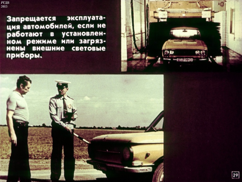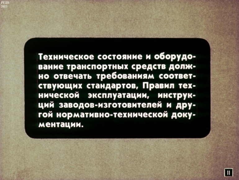 Правила дорожного движения 0 Категория: ДиафильмыПросмотры: 998 Диафильм "Правила дорожного движения". Техническое состояние и оборудование траспортных средств в СССРСтудия "Диафильм" Госкино СССР, 1986 год. Д-256-86, цветной 0-30 копеек
