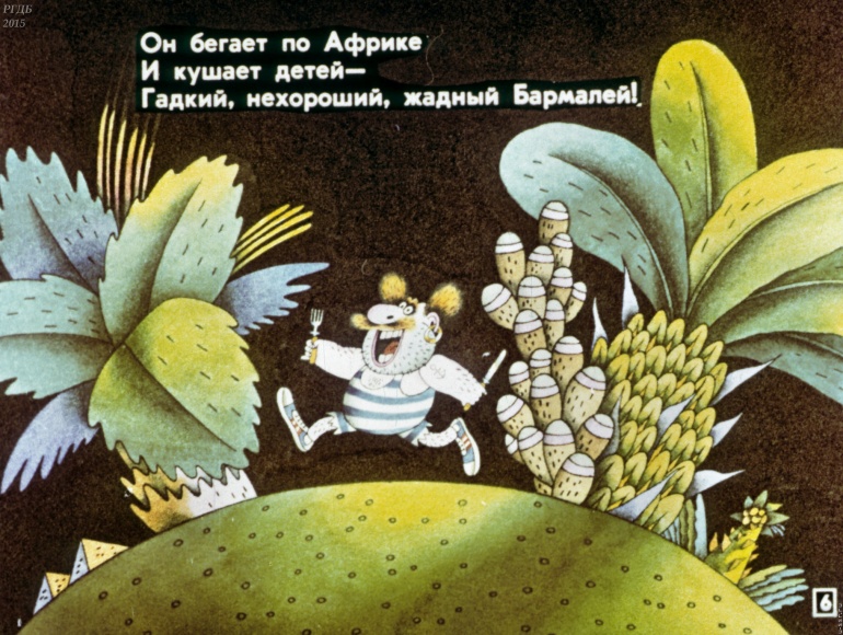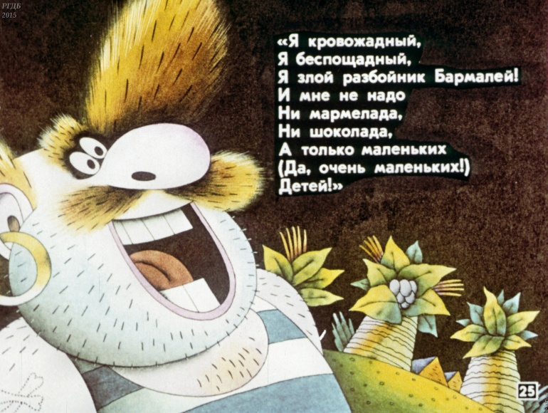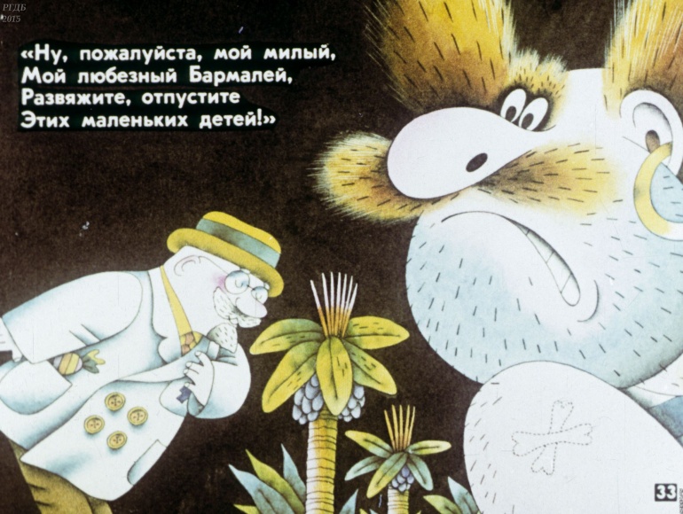 Бармалей 2 Категория: ДиафильмыПросмотры: 3 272 Корней Чуковский, "Бармалей".Студия "Диафильм", 1989 год. Д-052-89, цветной 0-30 копеек