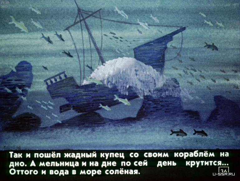 Почему в море вода соленая 0 Категория: ДиафильмыПросмотры: 855 Диафильм "Почему в море вода соленая". Эстонская народная сказкаСтудия "Диафильм" Госкино СССР, 1987 год. Д-113-87, цветной 0-30 копеек
