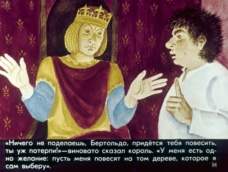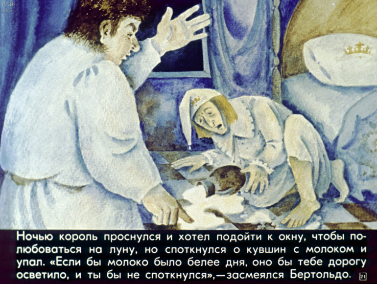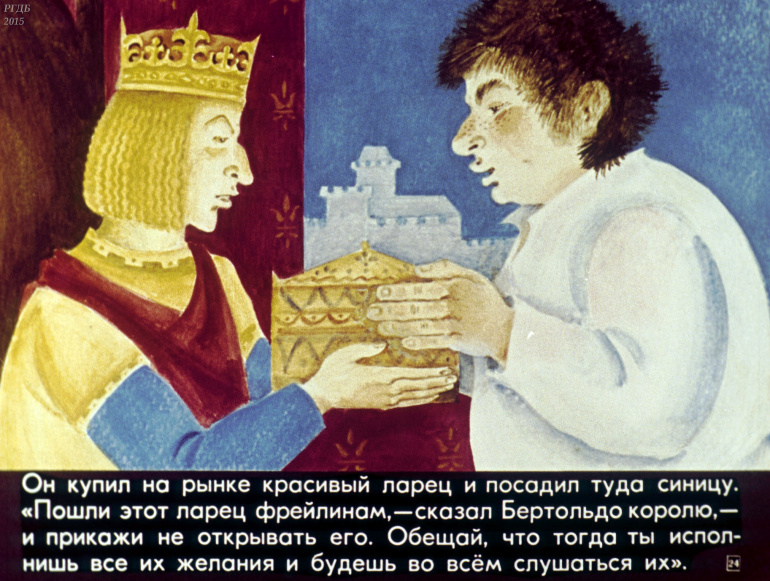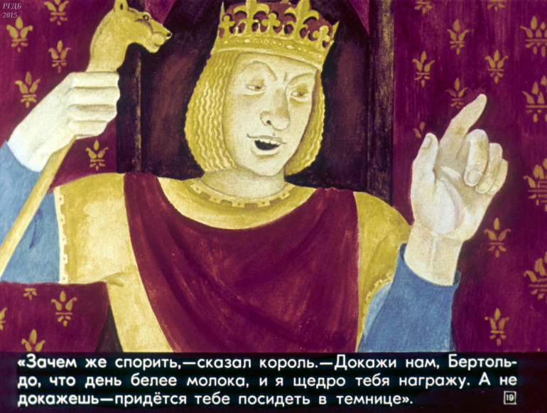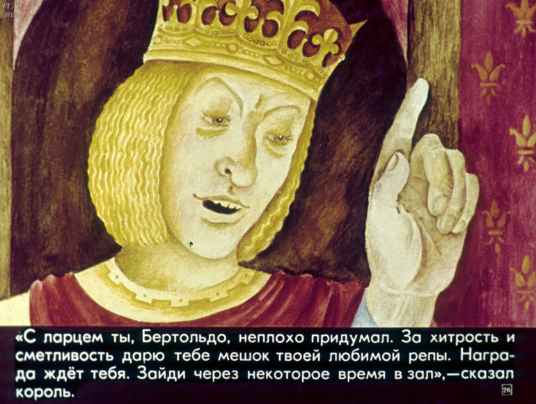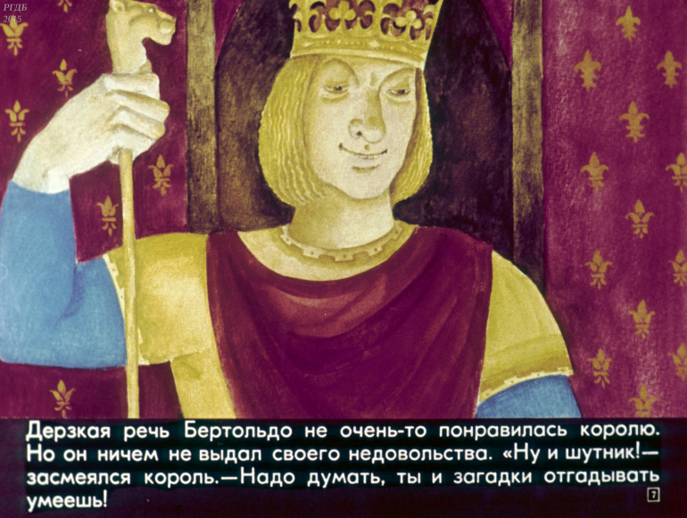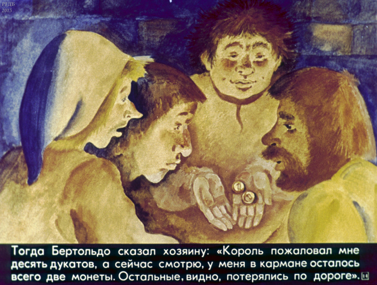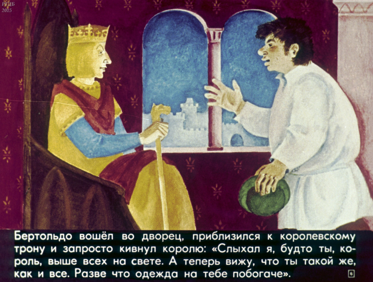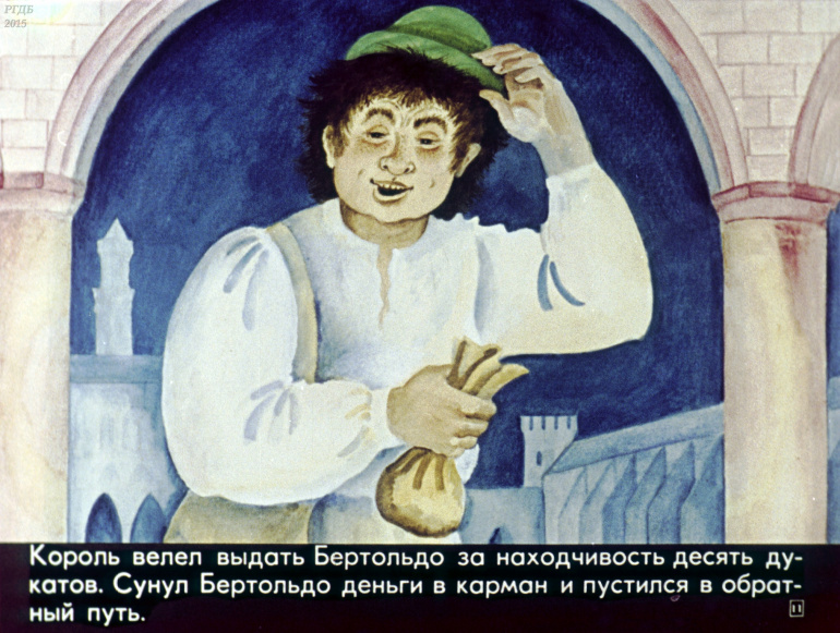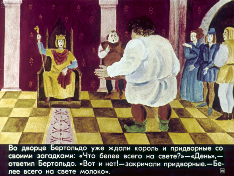 Приключения Бертольдо 1 Категория: ДиафильмыПросмотры: 761 Диафильм "Приключения Бертольдо". По мотивам итальянского фольклораСтудия "Диафильм" Госкино СССР, 1984 год. Д-198-84, цветной 0-30 копеек