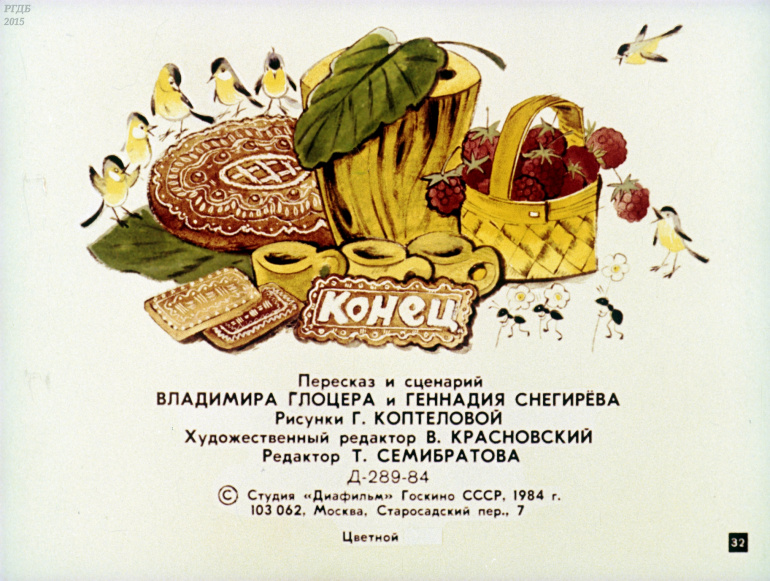 Пряничный домик 1 Категория: ДиафильмыПросмотры: 842 Диафильм "Пряничный домик". Русская народная сказкаСтудия "Диафильм" Госкино СССР, 1984 год. Д-289-84, цветной 0-30 копеек