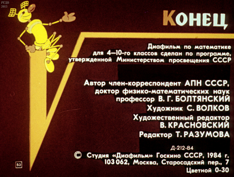 Развитие математики в СССР 0 Категория: ДиафильмыПросмотры: 686 Диафильм "Развитие математики в СССР".Студия "Диафильм" Госкино СССР, 1984 год. Д-212-84, цветной 0-30 копеек