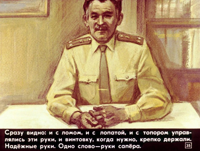 Руки сапера 1 Категория: ДиафильмыПросмотры: 683 Борис Никольский. Диафильм "Руки сапера".Студия "Диафильм" Госкино СССР, 1986 год. Д-114-86, цветной 0-30 копеек