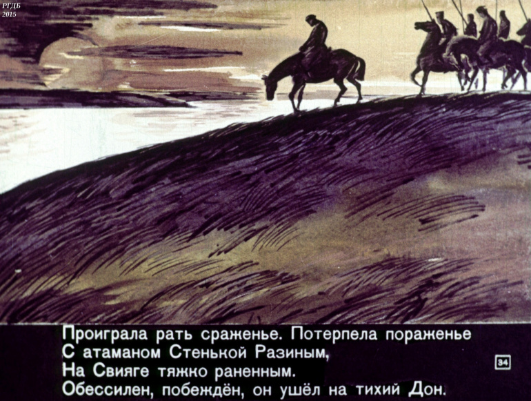 Сказание о Степане Разине 0 Категория: ДиафильмыПросмотры: 677 Н. Кончаловская. Диафильм "Сказание о Степане Разине". Студия "Диафильм" Госкино СССР, 1977 год. Д-220-65, цветной 0-30 копеек