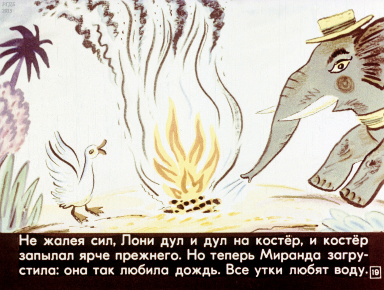 Сказка про слона, про костер и про белую уточку 0 Категория: ДиафильмыПросмотры: 657 Дональд Биссет. Диафильм "Сказка про слона, про костер и про белую уточку".Студия "Диафильм" Госкино СССР, 1982 год. Д-230-82, цветной 0-30 копеек