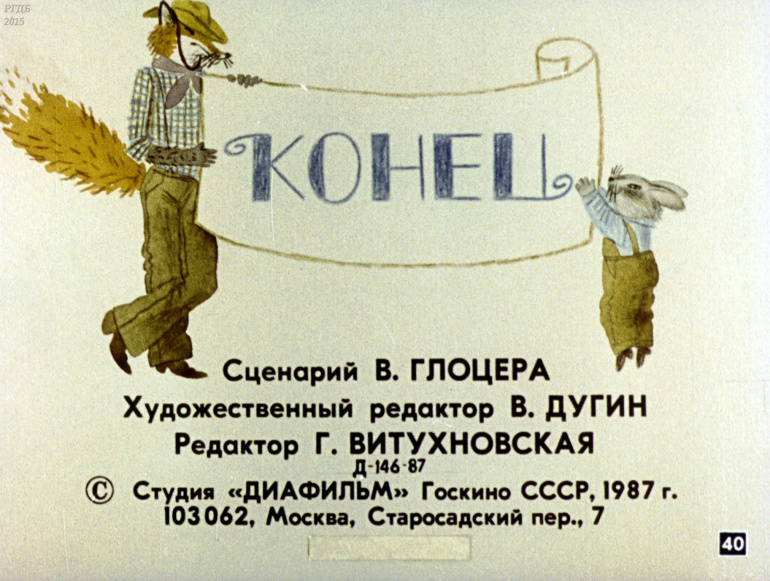 Сказки дядюшки Римуса 0 Категория: ДиафильмыПросмотры: 765 Д. Харрис. Диафильм "Сказки дядюшки Римуса".Студия "Диафильм" Госкино СССР, 1987 год. Д-146-87, цветной 0-30 копеек