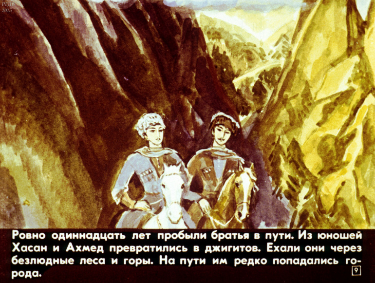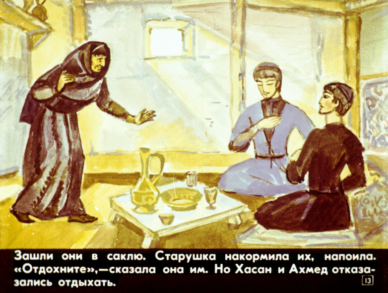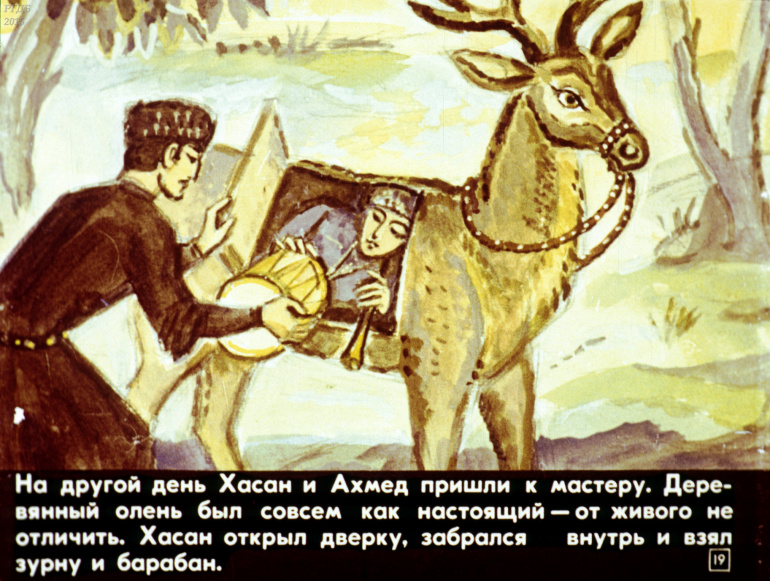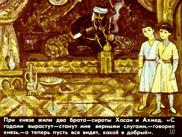 Хасан и Ахмед 1 Категория: ДиафильмыПросмотры: 739 Диафильм "Хасан и Ахмед". По мотивам чеченской сказки.Студия "Диафильм" Госкино СССР, 1986 год. Д-241-86, цветной 0-30 копеек