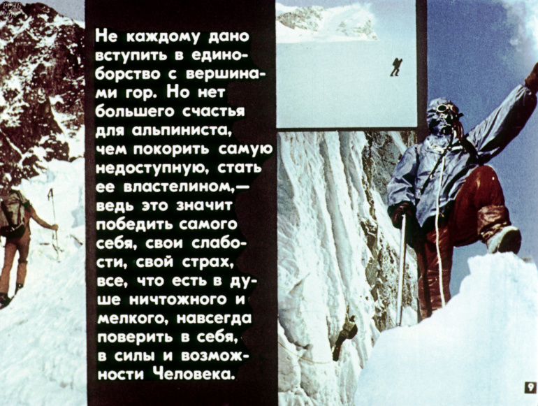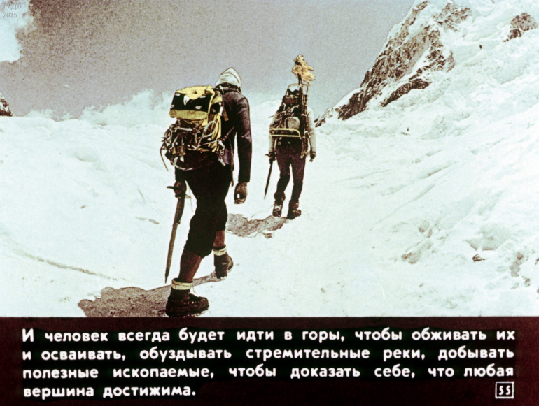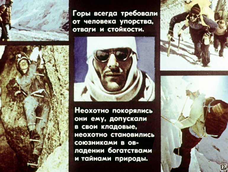 Человек и горы 0 Категория: ДиафильмыПросмотры: 580 Диафильм "Человек и горы".Студия "Диафильм" Госкино СССР, 1985 год. Д-245-85, цветной 0-30 копеек