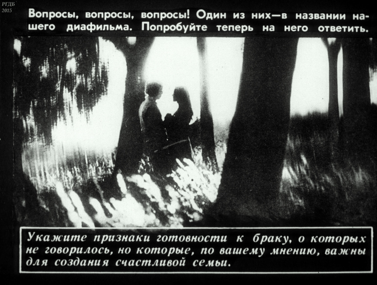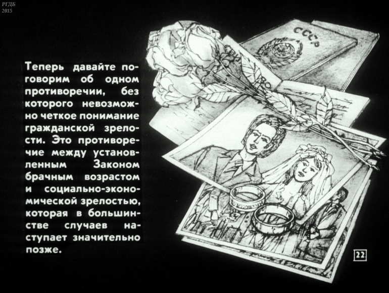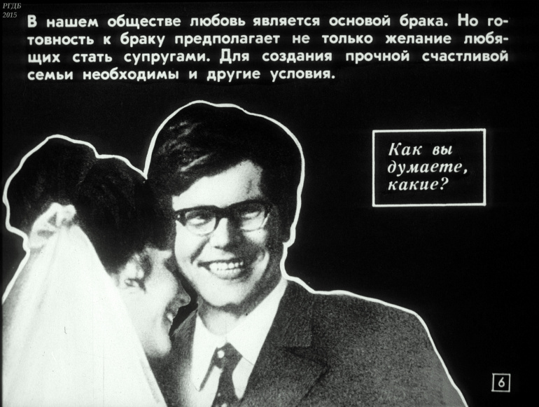 Что такое готовность к браку 0 Категория: ДиафильмыПросмотры: 753 Диафильм "Что такое готовность к браку". Этика и психология семейной жизни.Студия "Диафильм" Госкино СССР, 1986 год. Д-074-86, цветной 0-30 копеек