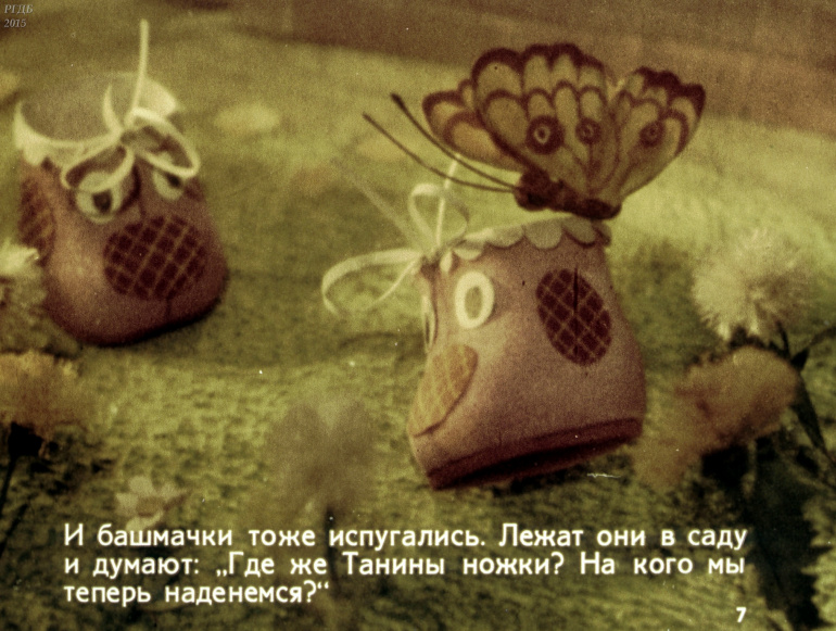 Чьи башмачки 0 Категория: ДиафильмыПросмотры: 702 Н. Павлова. Диафильм "Чьи башмачки".Студия "Диафильм" Госкино СССР, 1985 год. Д-144-85, цветной 0-30 копеек