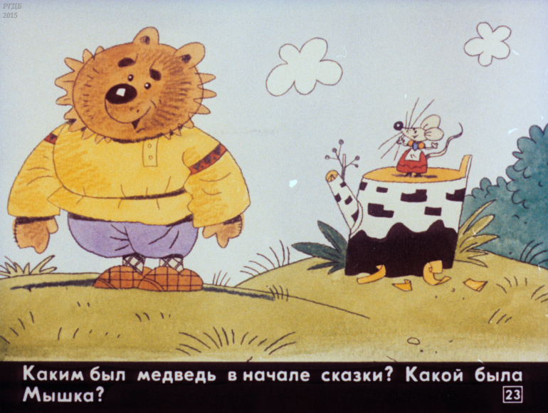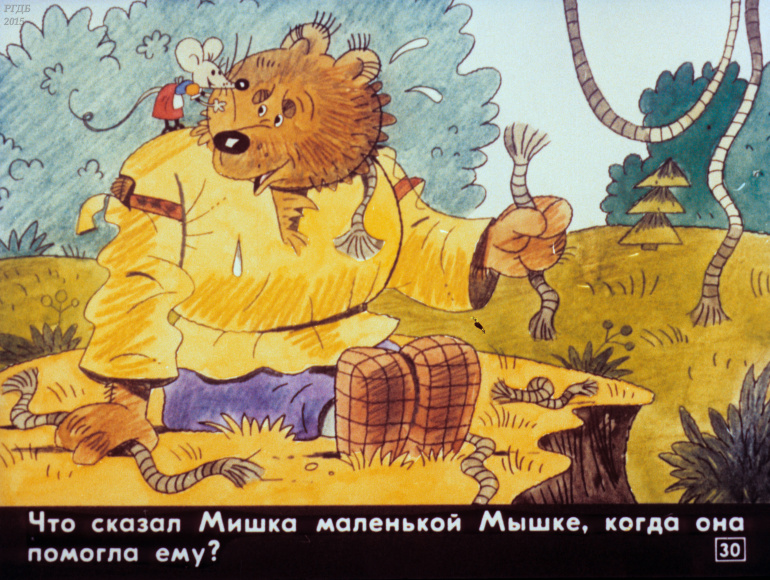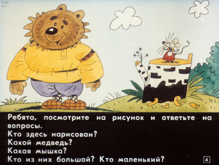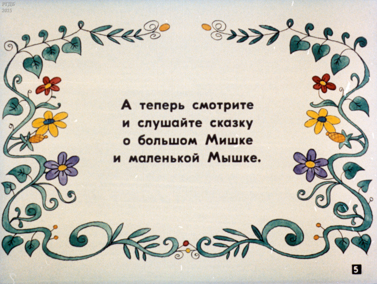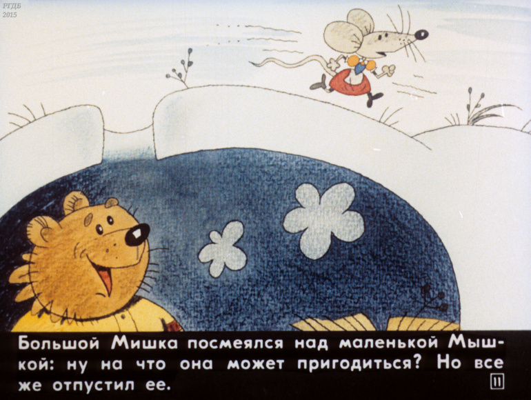 Большой Мишка и маленькая мышка 2 Категория: ДиафильмыПросмотры: 779 Диафильм "Большой Мишка и маленькая мышка". По латышской народной сказкеСтудия "Диафильм" Госкино СССР, 1991 год. Д-070-91, цветной