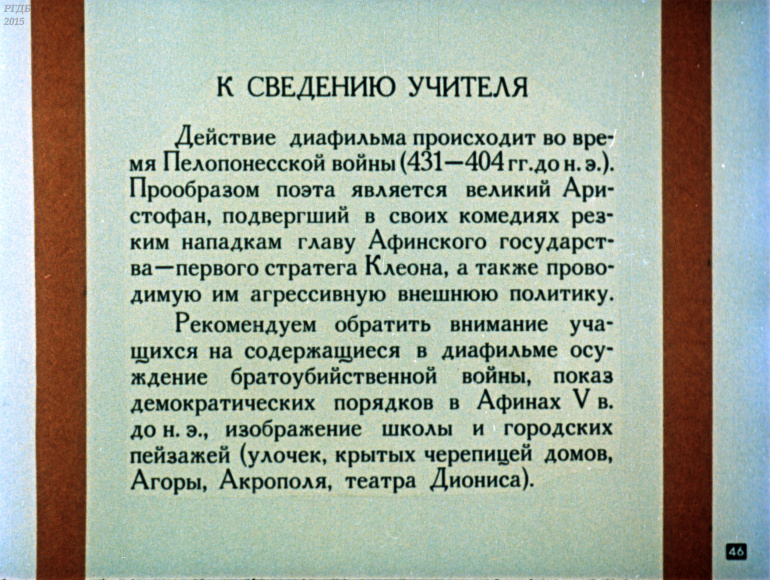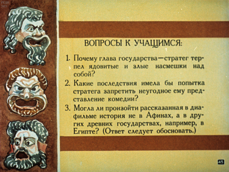 В Афинах 5 века до нашей эры 0 Категория: ДиафильмыПросмотры: 917 Диафильм по истории "В Афинах 5 века до нашей эры".Студия "Диафильм" Госкино СССР, 1990 год. Д-113-90, цветной