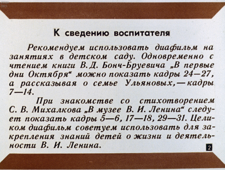 В музее В.И. Ленина 0 Категория: ДиафильмыПросмотры: 573 С. Михалков. Диафильм "В музее В.И. Ленина".Студия "Диафильм" Госкино СССР, 1986 год. Д-160-86, цветной 0-30 копеек