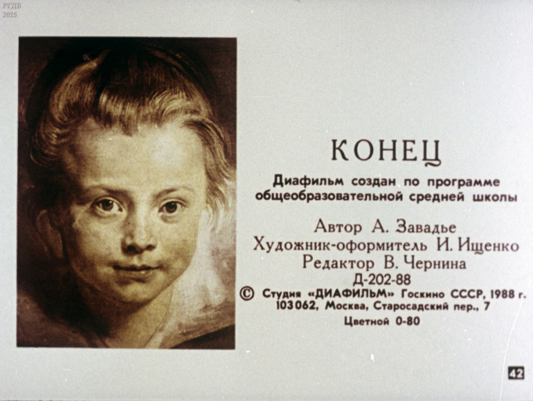 Великие художники Германии, Нидерландов, Испании 15-17 вв 0 Категория: ДиафильмыПросмотры: 590 Диафильм "Великие художники Германии, Нидерландов, Испании конца XV - первой половины XVII века".Студия "Диафильм" Госкино СССР, 1988 год. Д-202-88, цветной 0-30 копеек