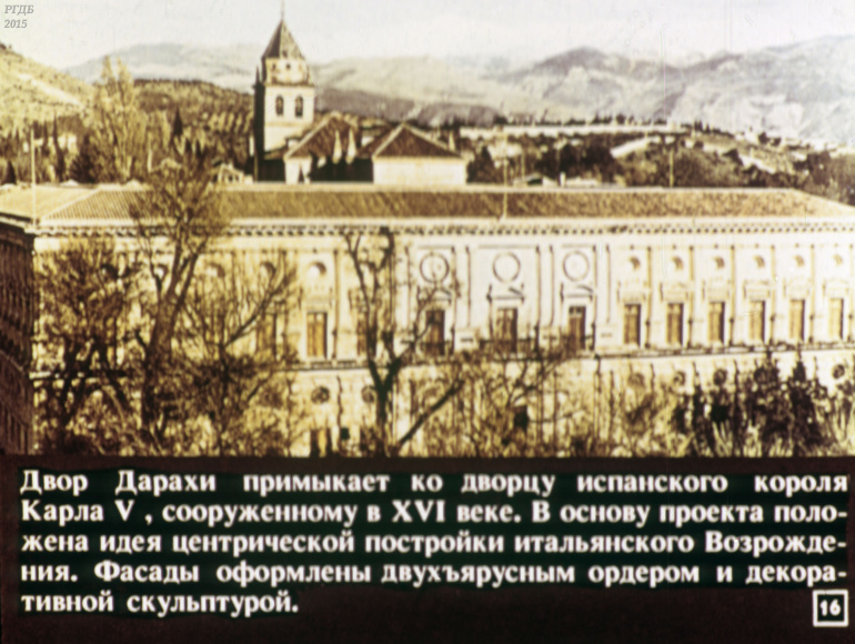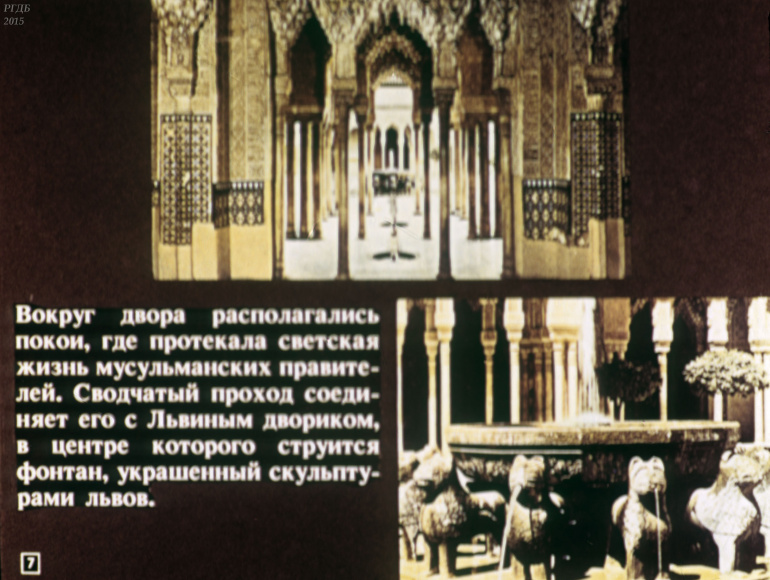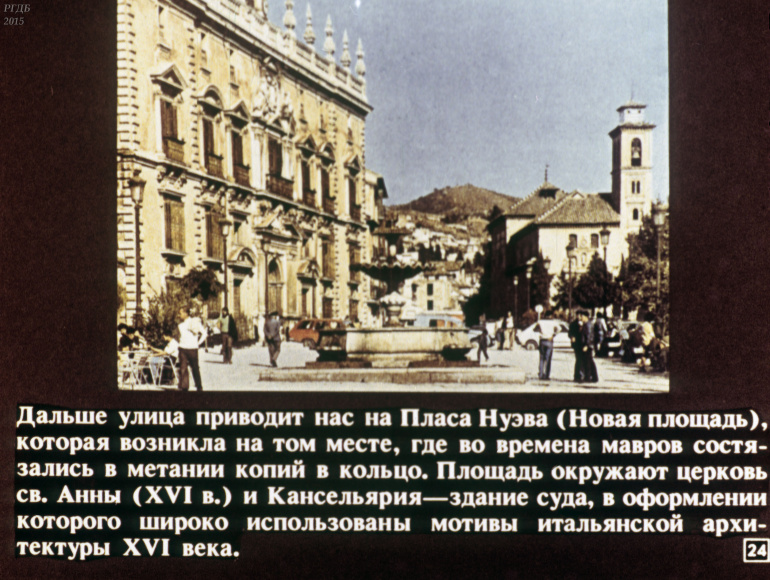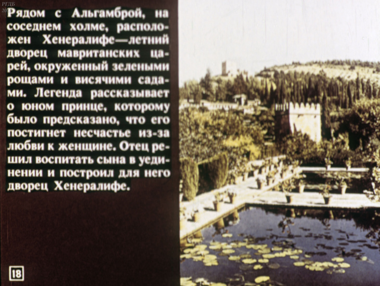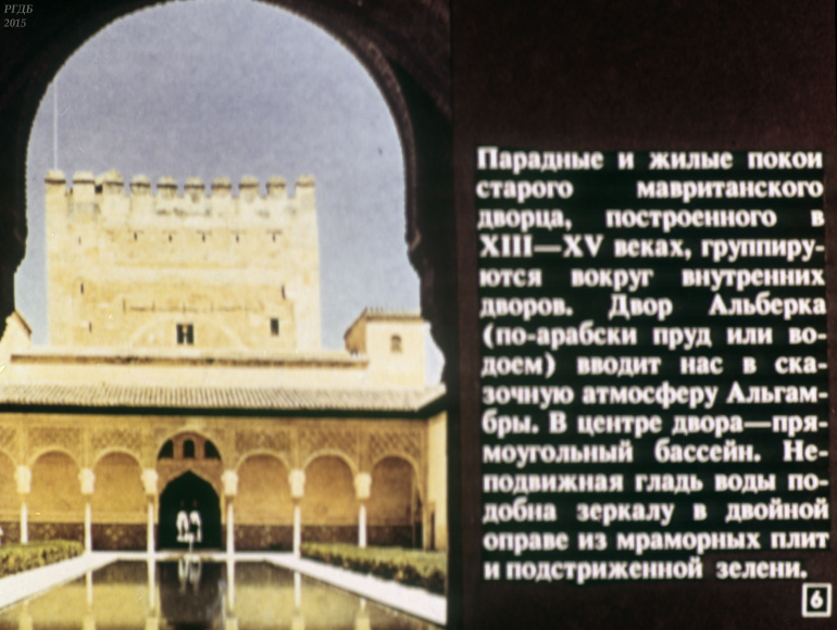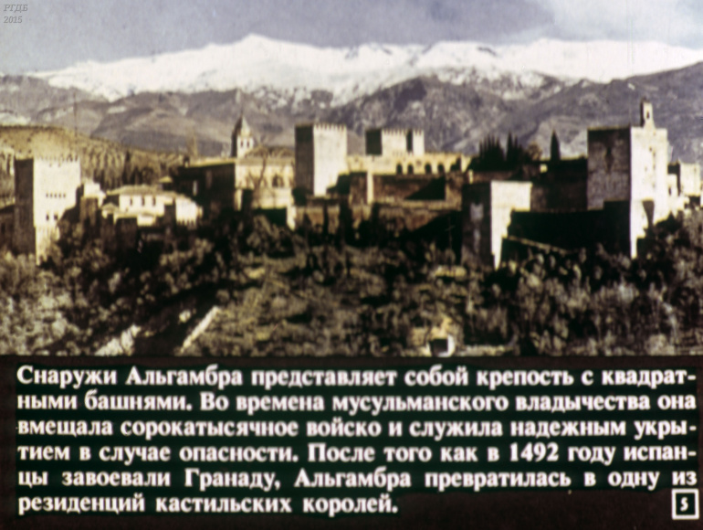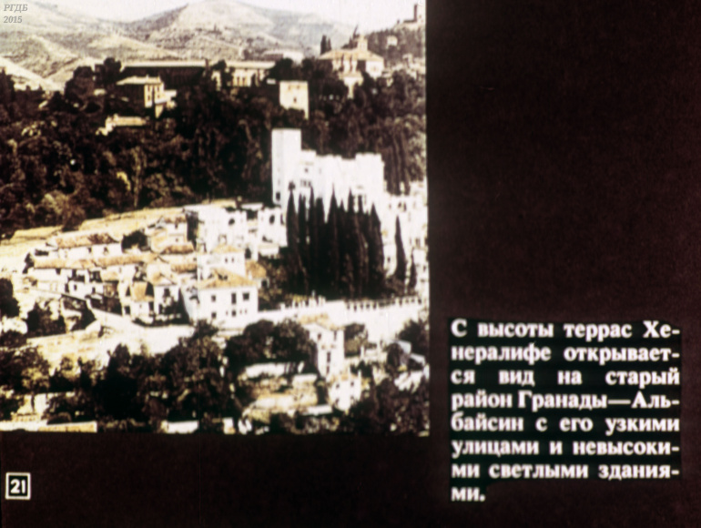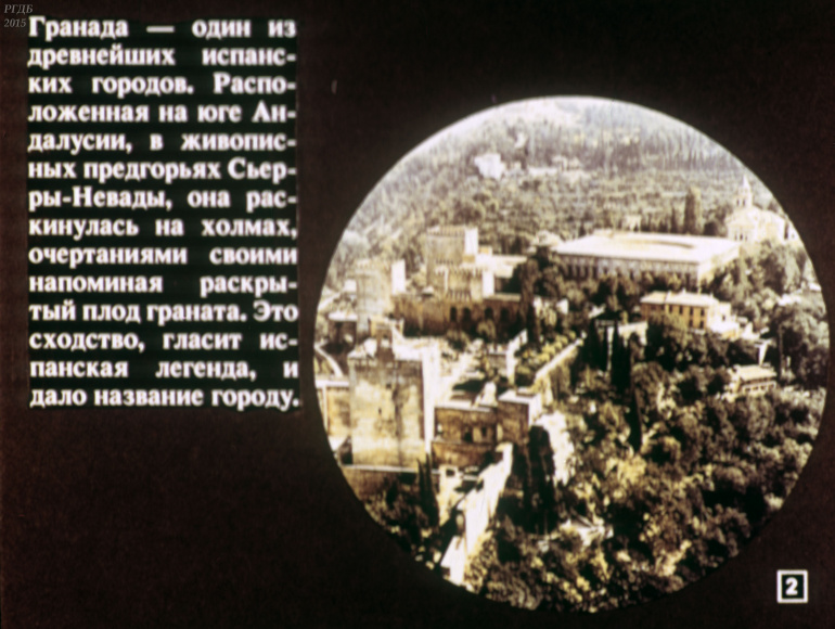 Гранада 0 Категория: ДиафильмыПросмотры: 555 Диафильм "Гранада". Из цикла "Города-музеи"Студия "Диафильм" Госкино СССР, 1989 год. Д-232-89, цветной 0-30 копеек