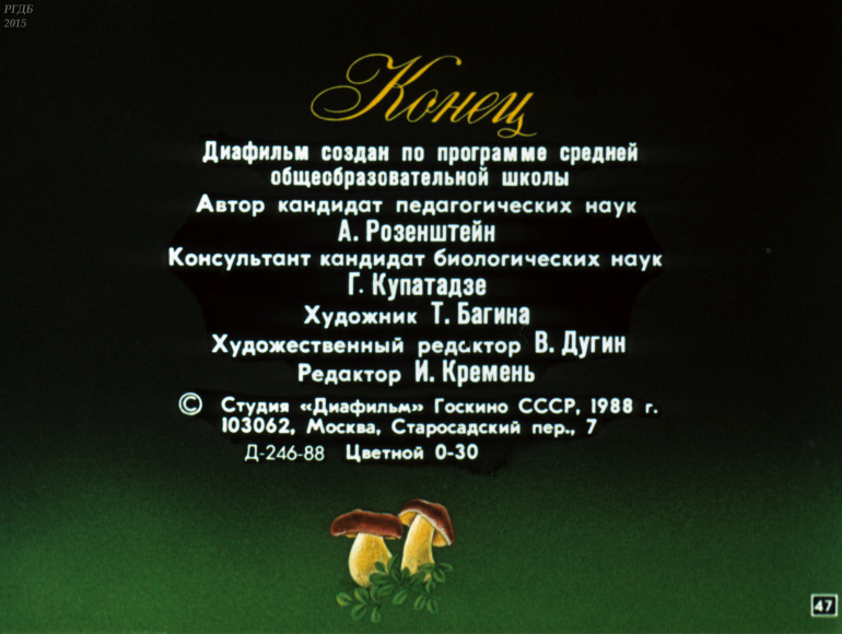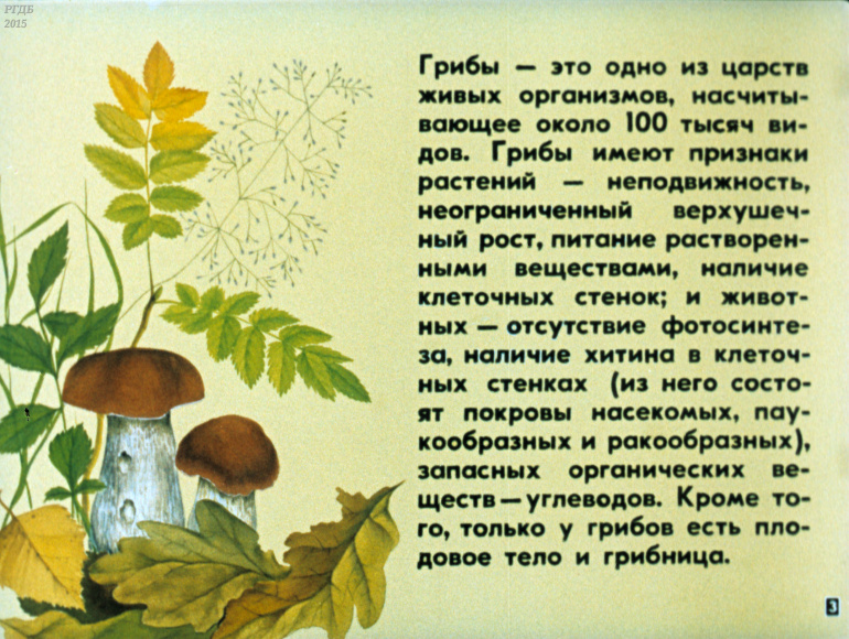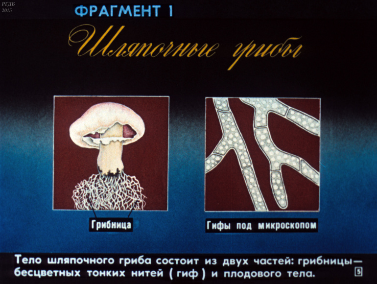 Грибы 1 Категория: ДиафильмыПросмотры: 754 Диафильм по биологии "Грибы".Студия "Диафильм" Госкино СССР, 1988 год. Д-246-88, цветной 0-30 копеек