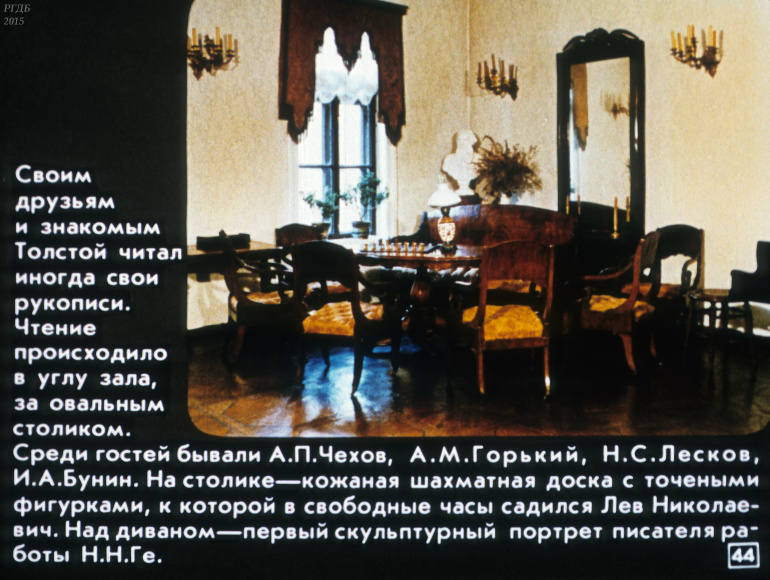 Дом-музей Л. Н. Толстого в Хамовниках 2 Категория: ДиафильмыПросмотры: 709 Диафильм "Дом-музей Л. Н. Толстого в Хамовниках".Студия "Диафильм" Госкино СССР, 1990 год. Д-154-90, цветной