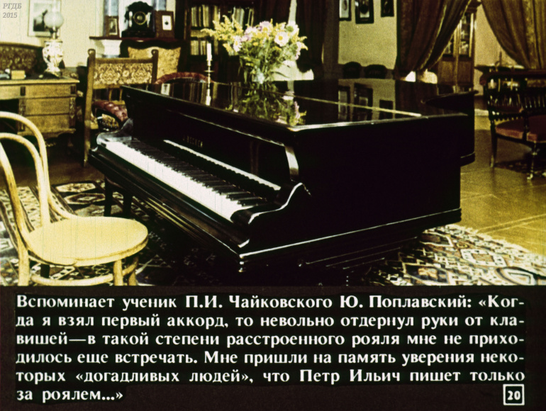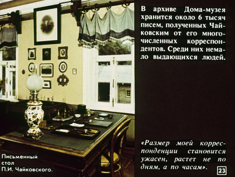 Дом-музей П.И. Чайковского в Клину 0 Категория: ДиафильмыПросмотры: 1 001 Диафильм "Дом-музей П.И. Чайковского в Клину".Студия "Диафильм" Госкино СССР, 1989 год. Д-223-89, цветной