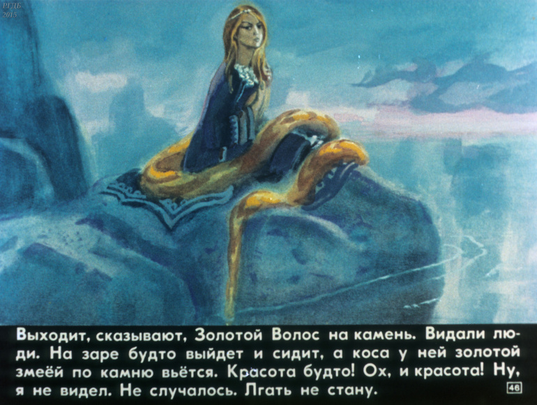 Золотой волос 1 Категория: ДиафильмыПросмотры: 710 П. Бажов. Диафильм "Золотой волос".Студия "Диафильм" Госкино СССР, 1973 год. Д-188-73, цветной 0-80 копеек