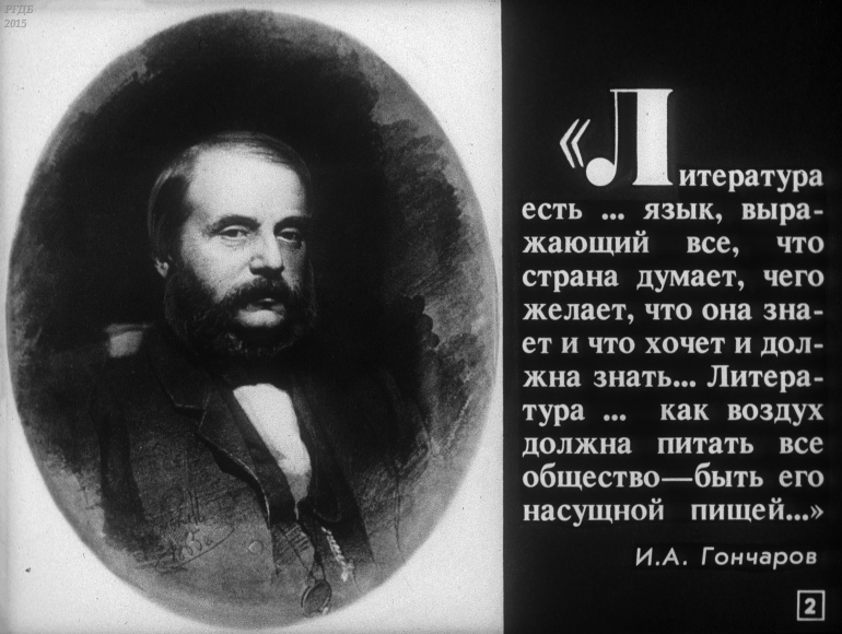 Иван Александрович Гончаров 2 Категория: ДиафильмыПросмотры: 640 Диафильм "Иван Александрович Гончаров".Студия "Диафильм" Госкино СССР, 1988 год. Д-055-88, черно-белый 0-20 копеек