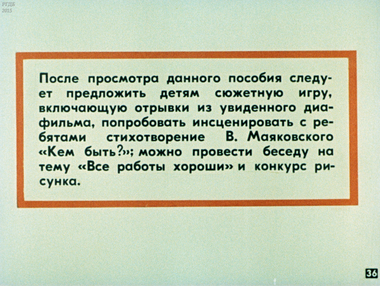 Кем быть 3 Категория: ДиафильмыПросмотры: 1 107 В. Маяковский. Диафильм "Кем быть".Студия "Диафильм" Госкино СССР, 1989 год. Д-048-89, цветной 0-30 копеек