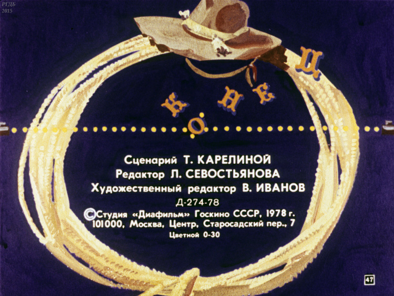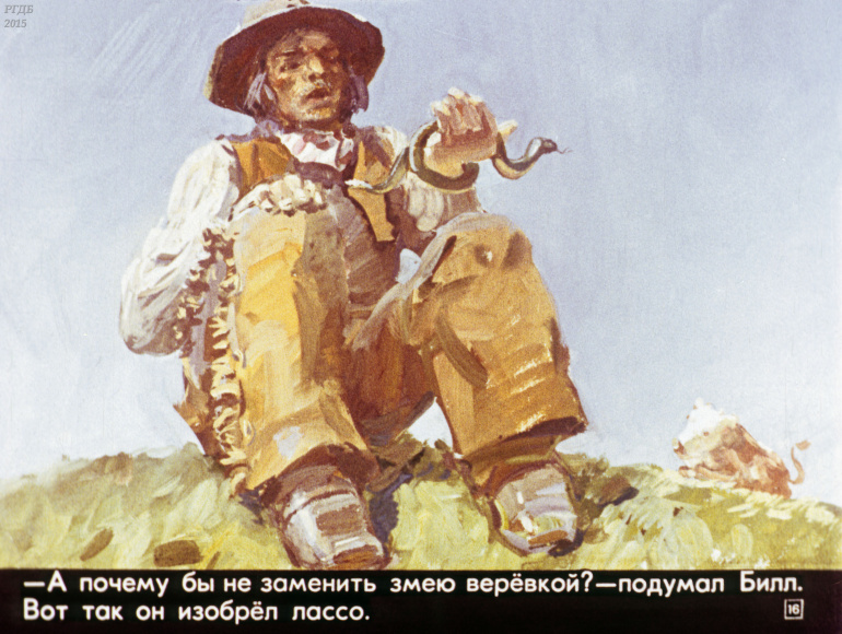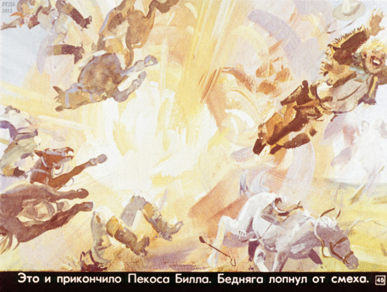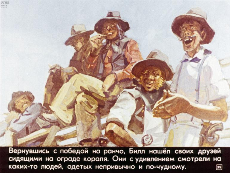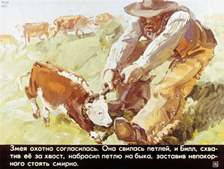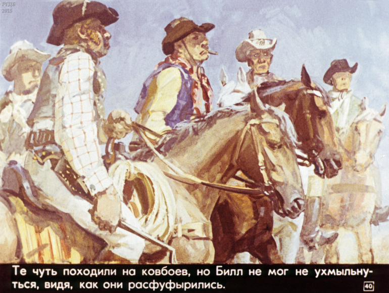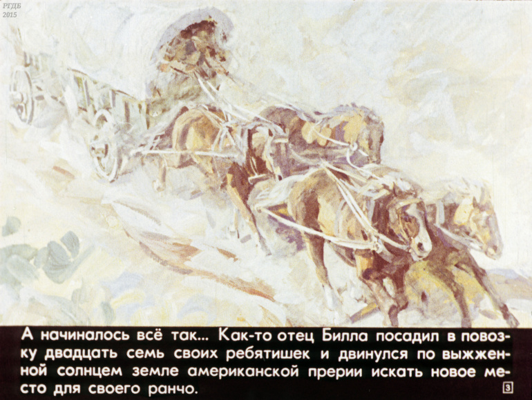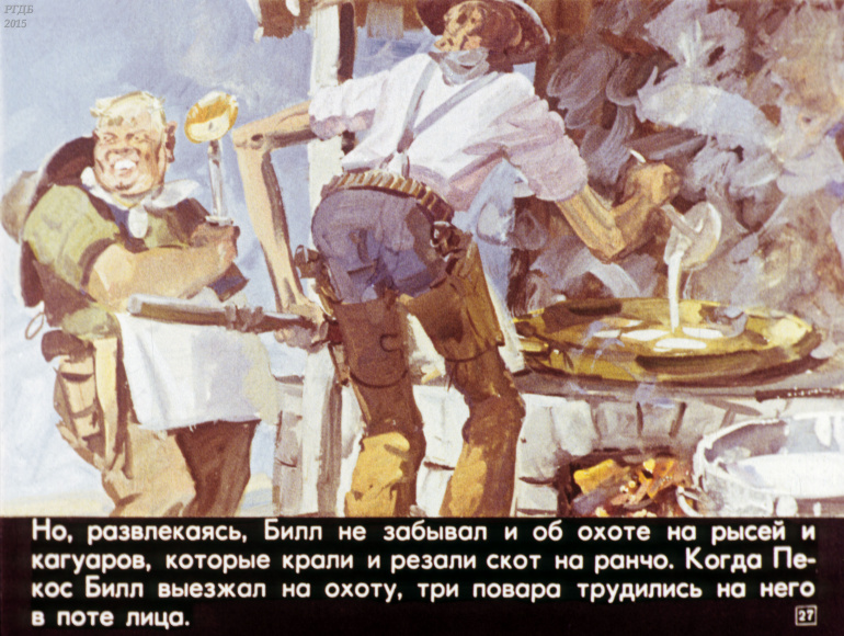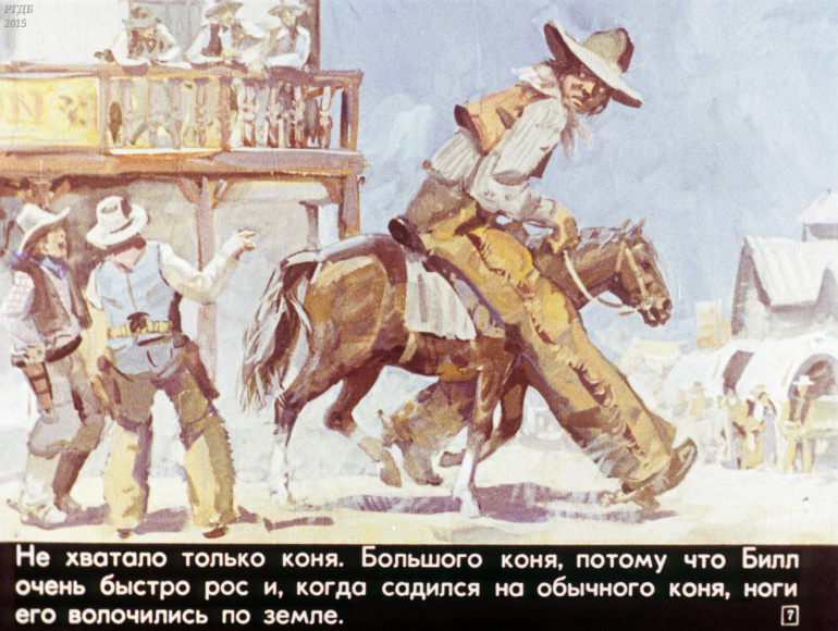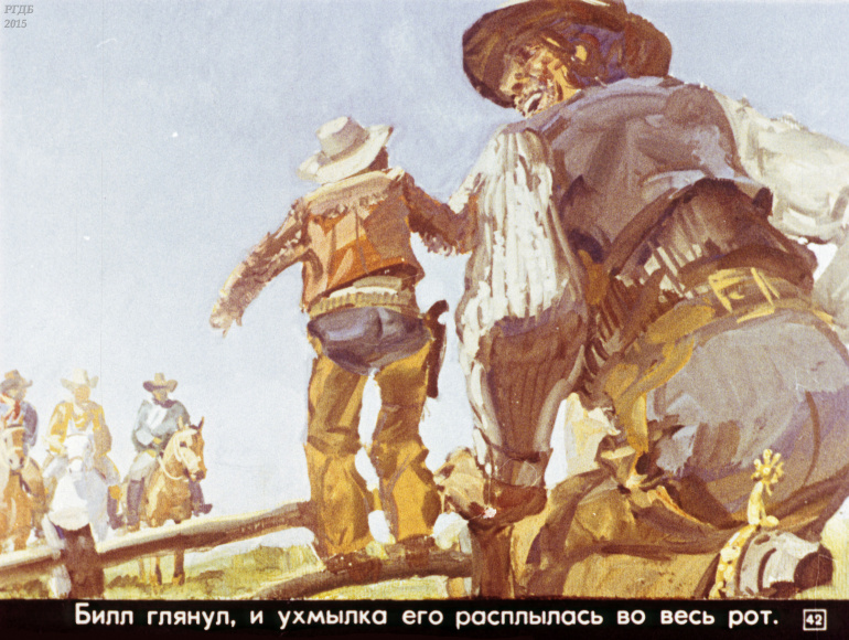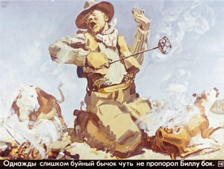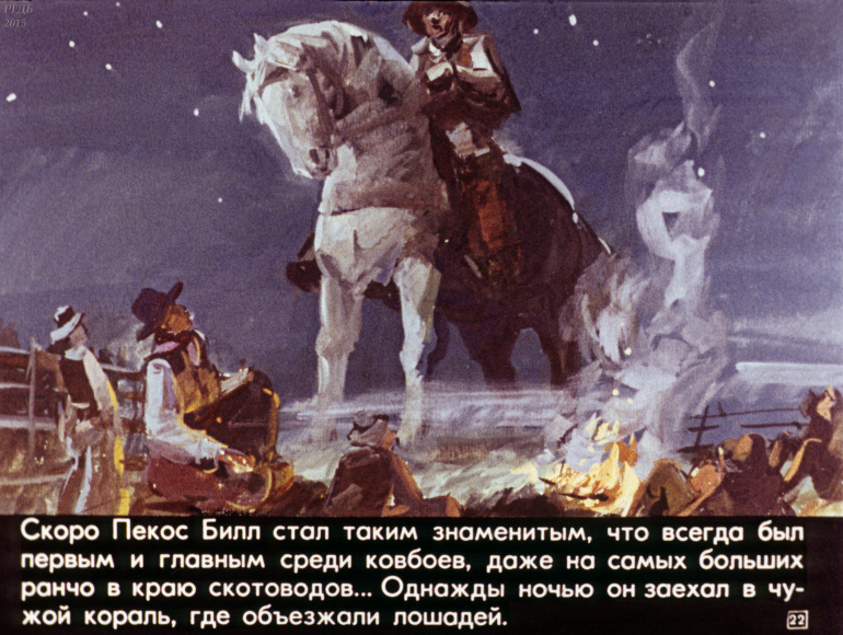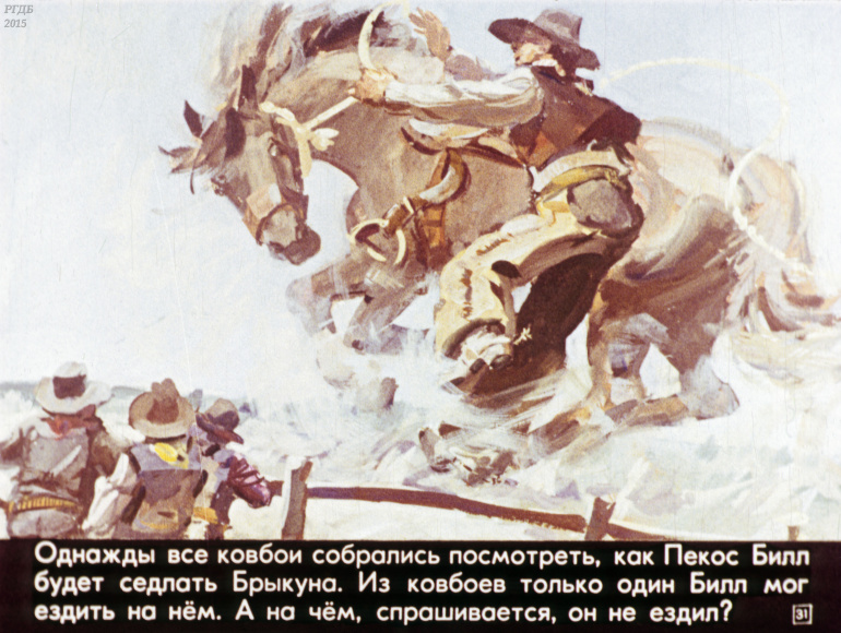 Ковбой Пекос Билл 0 Категория: ДиафильмыПросмотры: 832 Диафильм "Ковбой Пекос Билл". Американская народная сказкаСтудия "Диафильм" Госкино СССР, 1978 год. Д-274-78, цветной 0-30 копеек