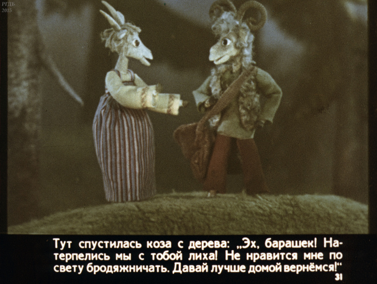 Коза и баран 1 Категория: ДиафильмыПросмотры: 797 Диафильм "Коза и баран". Карельская народная сказкаСтудия "Диафильм" Госкино СССР, 1989 год. Д-194-89, цветной 0-30 копеек