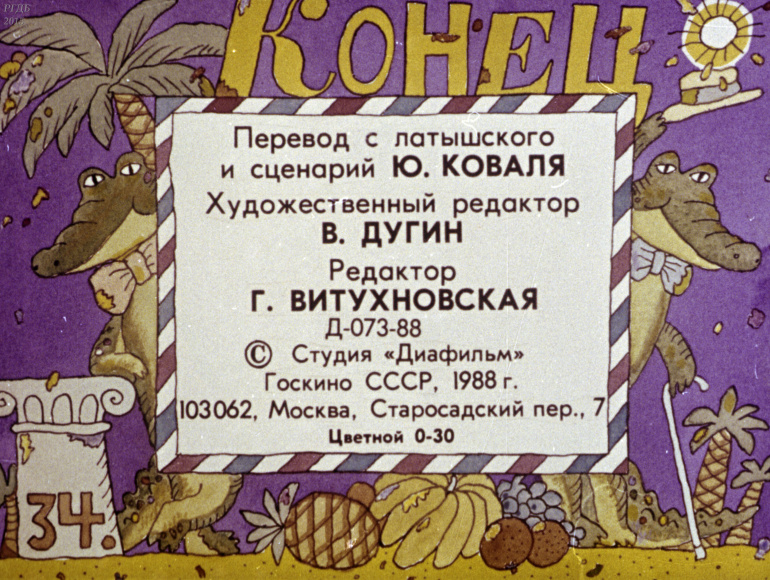 Кроко и Дил 4 Категория: ДиафильмыПросмотры: 793 Имант Зиедонис. Диафильм "Кроко и Дил".Студия "Диафильм" Госкино СССР, 1988 год. Д-073-88, цветной 0-30 копеек