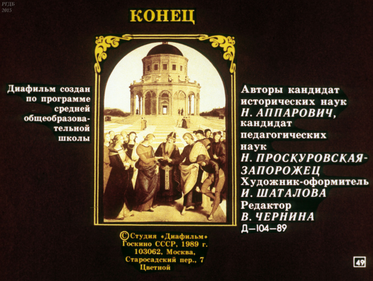 Культура Европы в конце 15 - первой половины 17 0 Категория: ДиафильмыПросмотры: 719 Диафильм по истории "Культура Европы в конце 15 - первой половины 17 века".Студия "Диафильм" Госкино СССР, 1989 год. Д-104-89, цветной