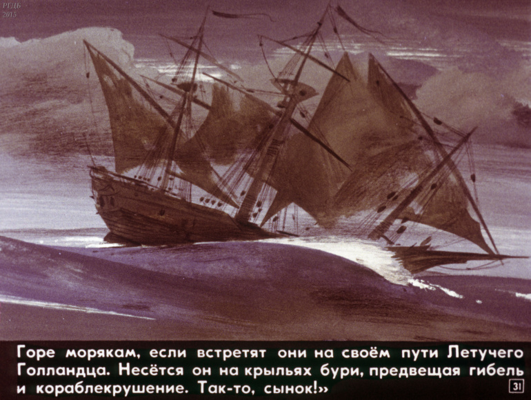 Легенда о Летучем Голландце 1 Категория: ДиафильмыПросмотры: 3 077 Диафильм "Легенда о Летучем Голландце".Студия "Диафильм" Госкино СССР, 1990 год. Д-010-90, цветной 0-80 копеек