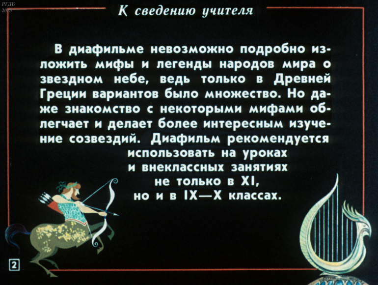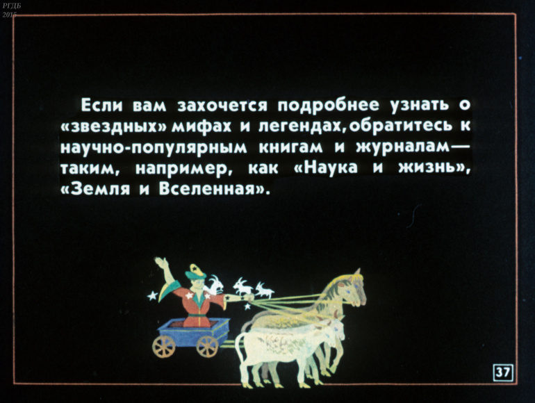 Легенды о звездном небе 0 Категория: ДиафильмыПросмотры: 676 Диафильм по астрономии "Легенды о звездном небе".Студия "Диафильм" Госкино СССР, 1990 год. Д-212-90, цветной