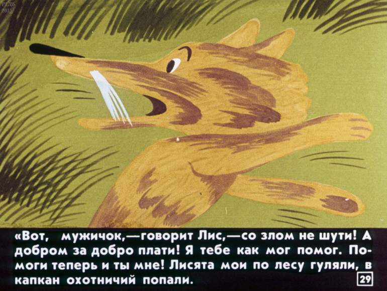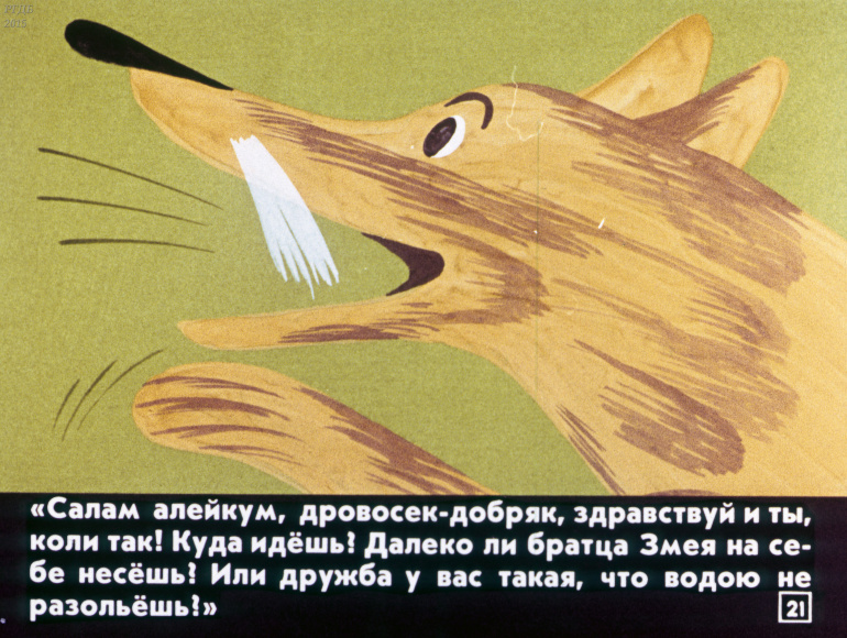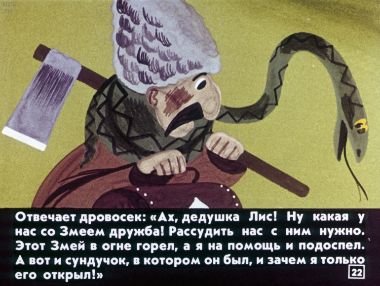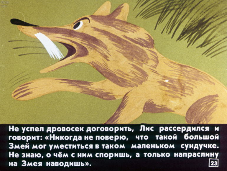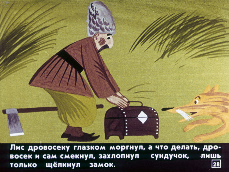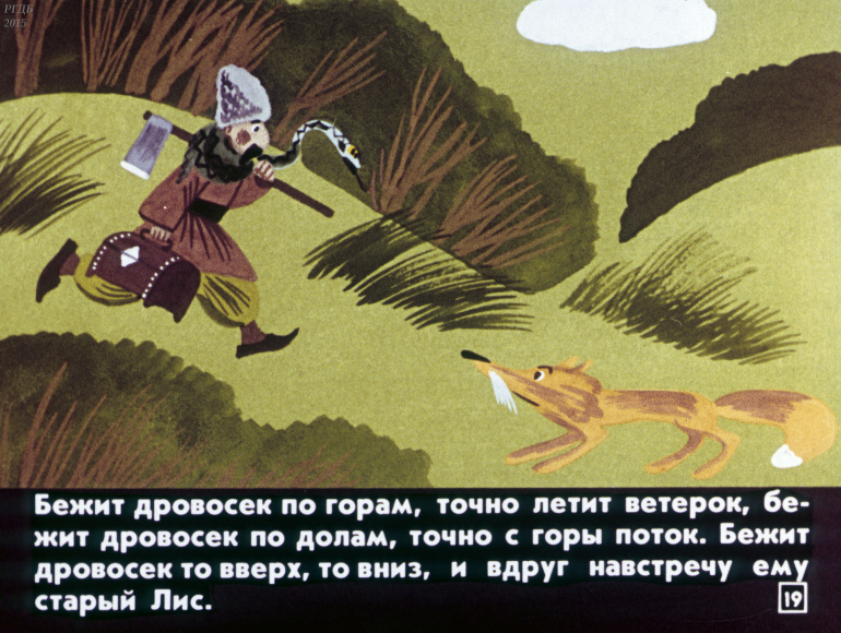 Лис и дровосек 0 Категория: ДиафильмыПросмотры: 508 Диафильм "Лис и дровосек". Азербайджанская народная сказкаСтудия "Диафильм" Госкино СССР, 1988 год. Д-111-88, цветной 0-30 копеек