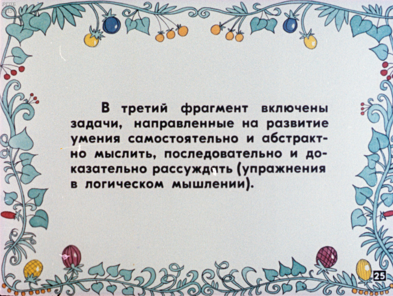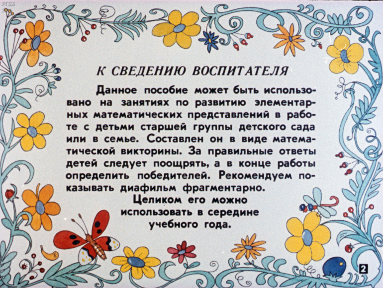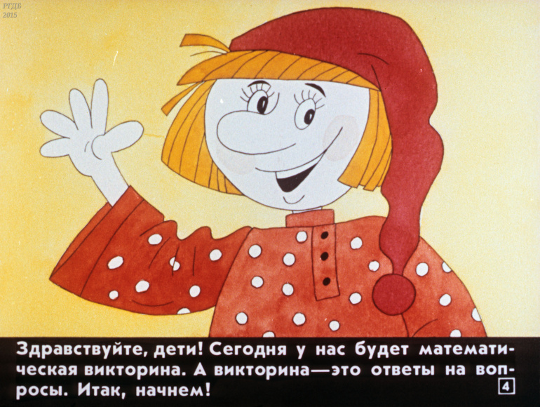Математическая викторина 0 Категория: ДиафильмыПросмотры: 502 Диафильм "Математическая викторина". Для детских садовСтудия "Диафильм" Госкино СССР, 1990 год. Д-216-90, цветной