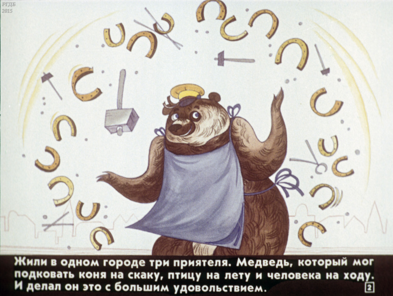 Медведь-кузнец 0 Категория: ДиафильмыПросмотры: 635 Бранко Радичевич. Диафильм "Медведь-кузнец".Студия "Диафильм" Госкино СССР, 1987 год. Д-179-87, цветной 0-30 копеек